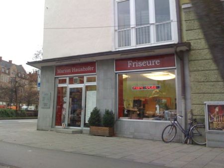 Wenn ich mit dem Auto nach München fahre, dann muss ich in der Regel an der stark befahrenen Kreuzung bei der Nymphenburgerstraße warten. Hier ist auch ein kleiner Friseursalon an der Ecke. Mit einer klassischen Laufschrift macht er auf seine Dienstleistungen aufmerksam. Einfach und genial!