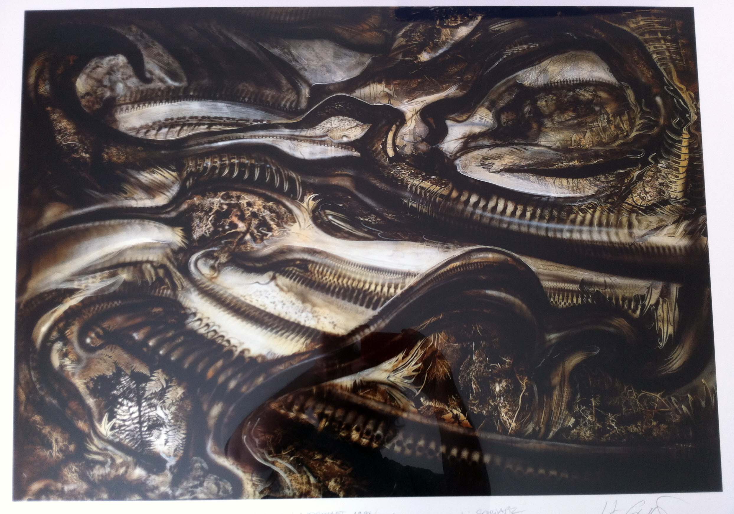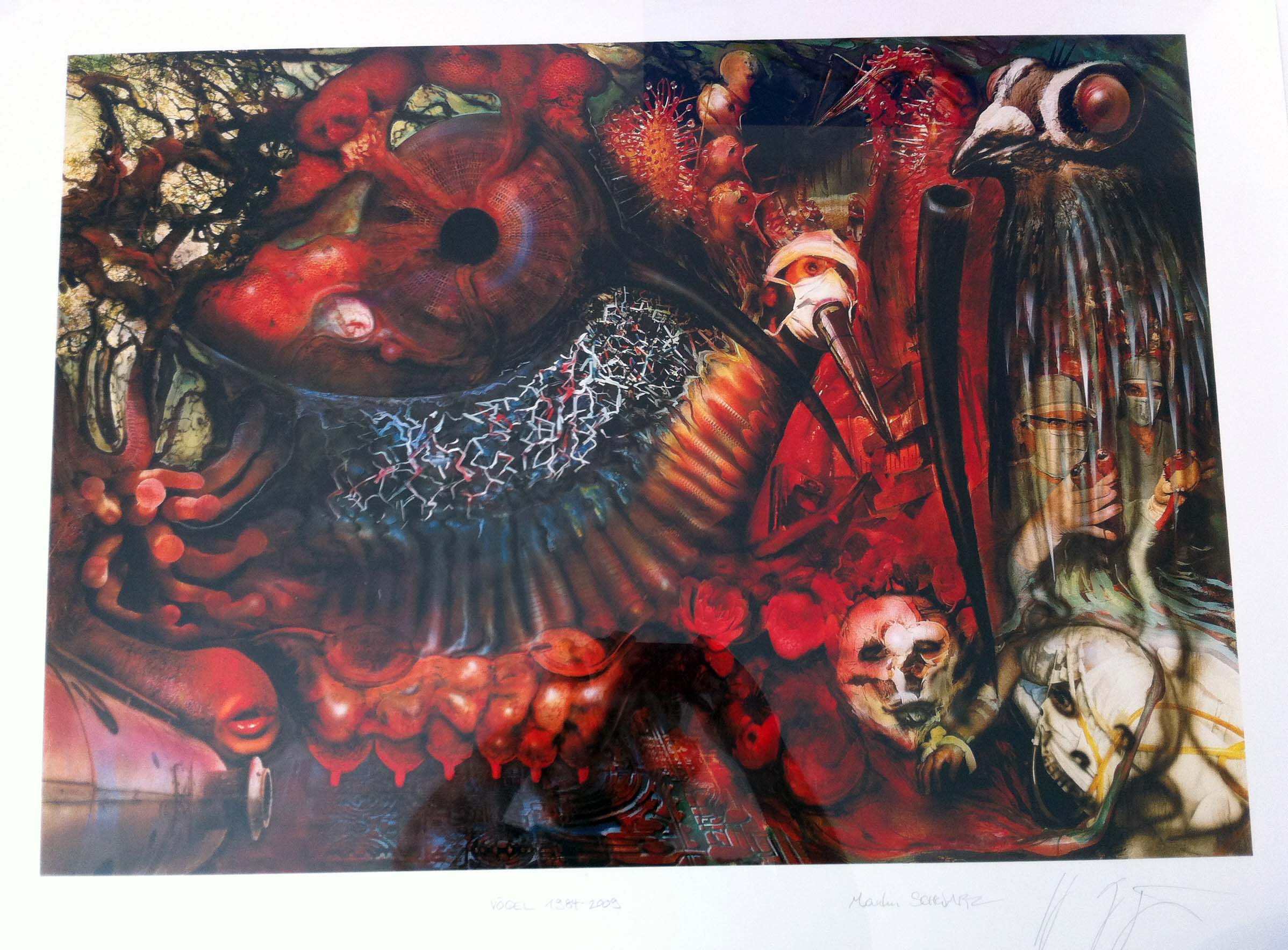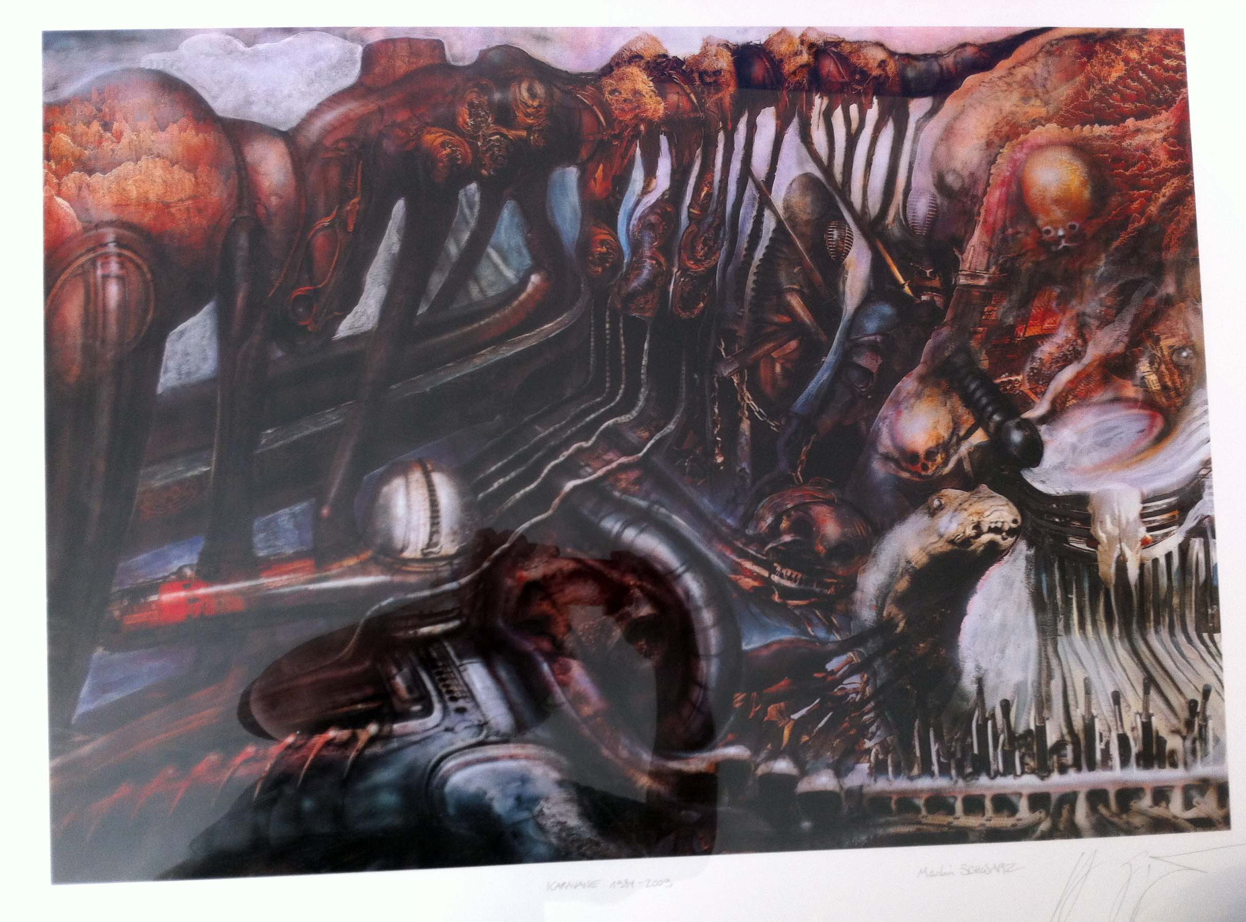 Es handelt sich um die Bilder „Karawane“, „Schlangenlandschaft“ und „Vögel“. Alle drei stammen von H.R. Giger und Martin Schwarz. Die beiden Künstler haben 1984 sehr erfolgreich zusammengearbeitet. Ergebnisse waren unter anderem diese Bilder.