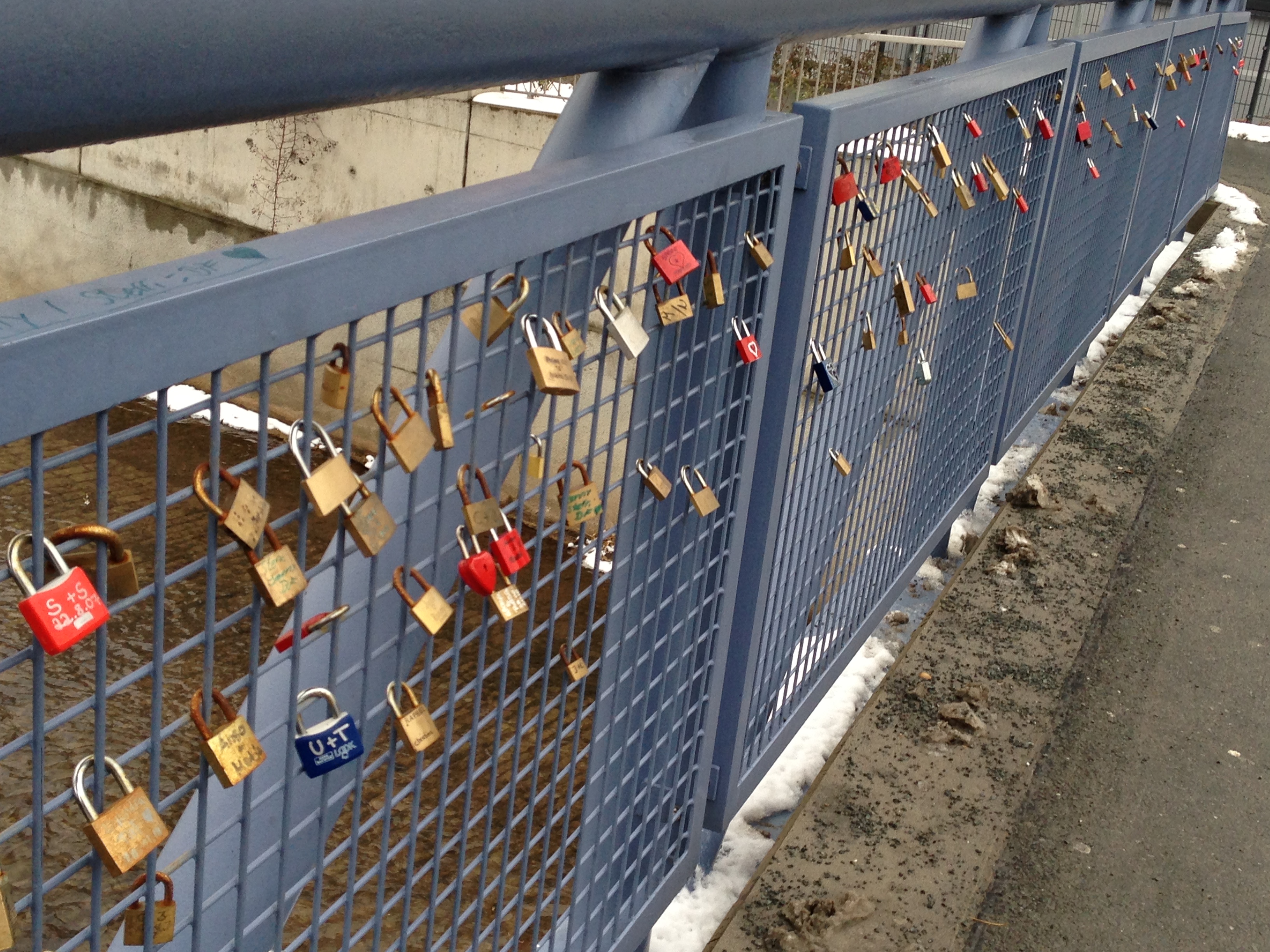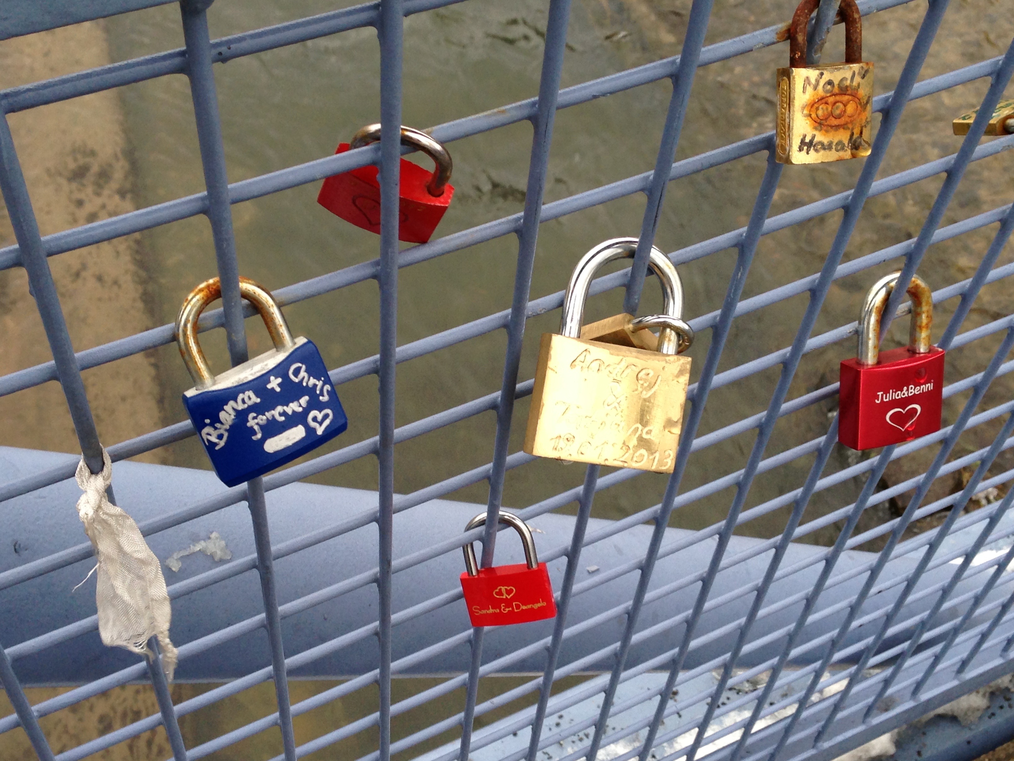 Jede Zeit hat ihre Liebesbeweise. Einst waren es rote Rosen, dann ein Ring, dann ein Herz in die Baumringe geritzt und dann sind es Freundschaftsbänder. Im Moment sind es wohl Liebesschlösser. Ich meine nicht die stolzen Bauwerke mit Türmchen (obwohl sie sicherlich auch ein schöner Liebesbeweis wären), ich meine die kleinen Vorhängeschlösser.