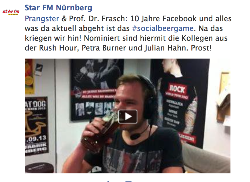 Schlagwörter: socialbeergame, Bier, Bier-Challenge, Bierspiel, Facebook, Kettenbrief, Medienkompetenz, Neknomination, Privatsphäreeinstellungen, Radiosender, Saufen, Social Graph, Star FM Nürnberg, Timeline, Verantwortung der Medien