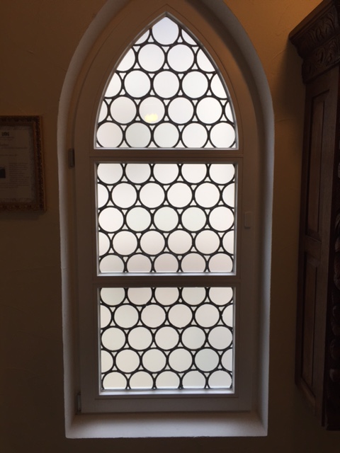 Spitzbogenfenster im Hotel Prinz Luitpold Bad in Bad Hindelang im Allgäu.
