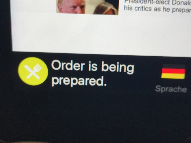 Die Masse der Restaurants im Terminal C funktionieren anders als die Restaurants, die ich gewohnt war. Jeder Tisch verfügt über ein iPad. Hier kann der Kunde seine Bestellungen aufgeben. Das musste unsere technikverrückte Familie gleich ausprobieren. Wir entschieden uns für ein italienisches Restaurant und jeder griff zum ihm vorliegende iPad. Das Display listet die Speisekarte, Facebook, Twitter, Nachrichten und auch Spiele-Apps auf.