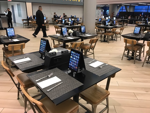 Eine Zukunft des Restaurants habe ich am Flughafen Newark Liberty International Airport angetroffen. Wir waren auf Rückflug von New York und hatten noch etwas Zeit am Flughafen, weil Homeland Security schnell und zügig arbeitete und keine Zicken machte. K1/2 hatten Hunger und so beschlossen wir, unsere letzte Nahrung in den USA aufzunehmen. Der Newark Liberty International Airport ist ein großer Flughafen und wir wurden via Air Train zum Terminal C gebracht und suchten uns ein Restaurant.