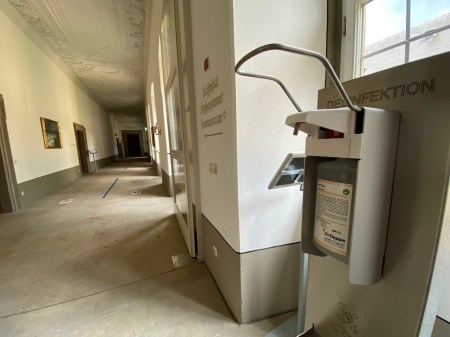 Im Foyer gibt es Plexiglas und die Mitarbeiter tragen zudem Masken. Wer als Gast seine Maske vergessen hat, wird spätestens hier freundlich, aber deutlich darauf hingewiesen, dass eine Maskenpflicht im Hause herrscht, sobald man sich bewegt. Wer keine Maske hat, kann sich an der Rezeption für kleines Geld eine kaufen.