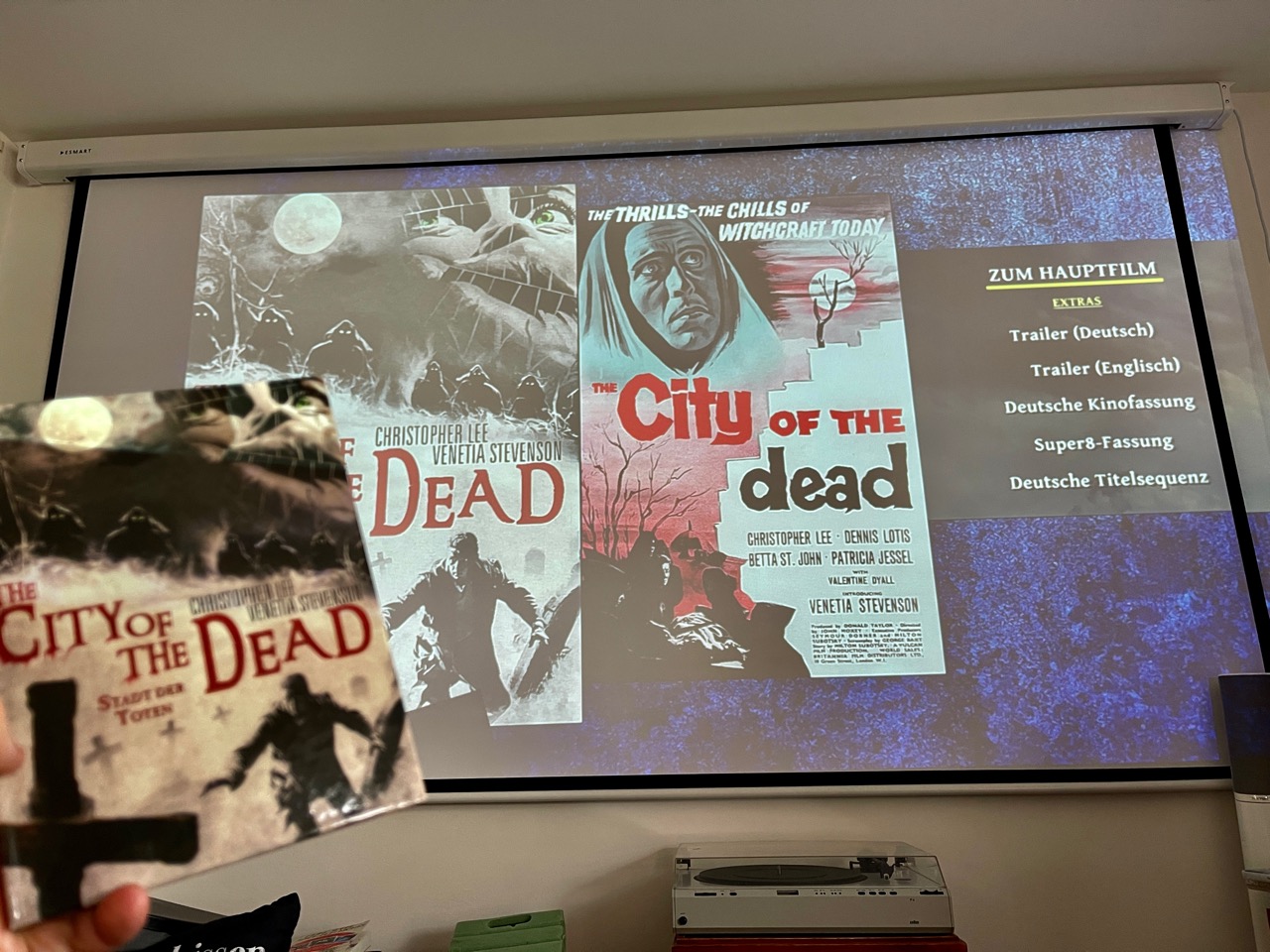 Und so sah ich, dass es von The City of the Dead – Stadt der Toten ein Mediabook mit Bluray und DVD sowie Booklet gab. Klar, das Ding musste her. Den Kauf der Super 8-Kopie hätte ich mir sparen können, denn die Version war auf den Extras der Discs restauriert auch abgelegt. Aber natürlich entfiel damit der Aufbau des Projektor und das Ritual des Knatterns.