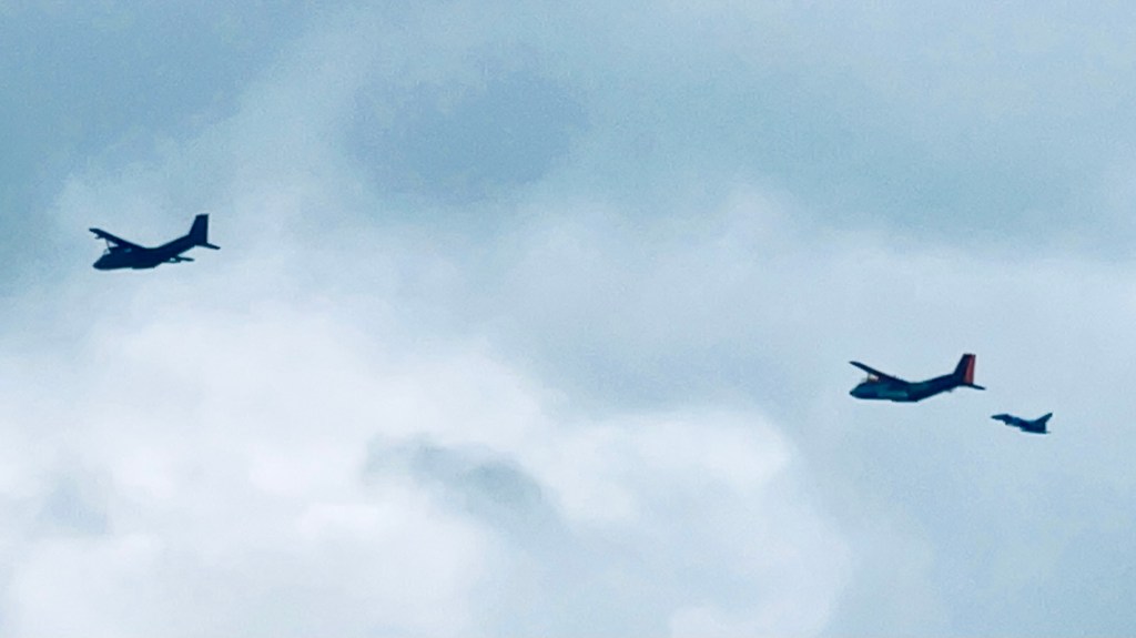 Nun ging die Ära der Transall zu Ende. Am 18. August 2021 kam es noch einmal zu einer Begegnung. Zwei Transall-Maschinen und ein Eurofighter überflogen auf einer Goodbye-Tour den ehemaligen Fliegerhorst Fürstenfeldbruck Fursty. Für mich war klar, dass ich da dabei sein wollte, wenn es vor meiner Haustür stattfindet.