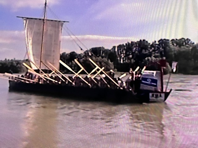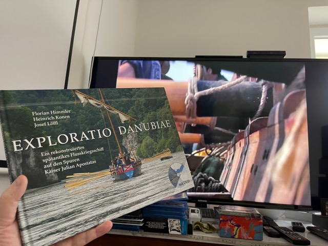 Schade, dass es zu dieser Zeit keine sozialen Netzwerke gegeben hat, denn dann wäre diese Wissenschaftsreise noch verbreiteter. So wählte man das Buch und das Fernsehen als Massenmedium. Heute wäre auf der Galeere ein Wissenschaftsblogger dabei und hätte die Botschaft verbreitet. Interessant zu sehen, sind die beteiligten Studis, die sich freiwillig für die Reise meldeten und sogar 150 Euro Passage bezahlten, damit sie den ganzen Tag bei Wind und Wetter rudern mussten. Die in die Rolle einer spätantiken Schiffsbesatzung geschlüpften Studenten und Wissenschaftler bewältigen zudem ein körperlich anstrengendes Testprogramm, dessen Resultate zum Verständnis der spätantiken Flottenorganisation an Rhein und Donau beitragen. 180000 Ruderschläge hatte jeder zu bewältigen.So macht Wissenschaft Spaß und bitte, bitte mehr davon und nachzulesen in Exploratio Danubiae: Ein rekonstruiertes spätantikes Flusskriegsschiff auf den Spuren Kaiser Julian Apostatas