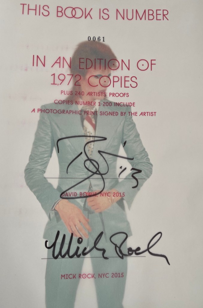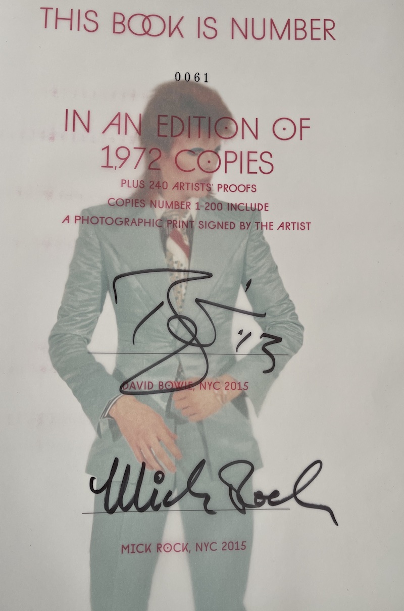 Das Ganze kam durch eine Veröffentlichung des Taschen Verlages und ich hatte die Gelegenheit, einen Sonderdruck des Buches The Rise of David Bowie 1972-1973 von Mick Rock zu erwerben, inklusive der Autogramme von David Bowie und Mick Rock im Buch. Hier das damalige Unboxing.