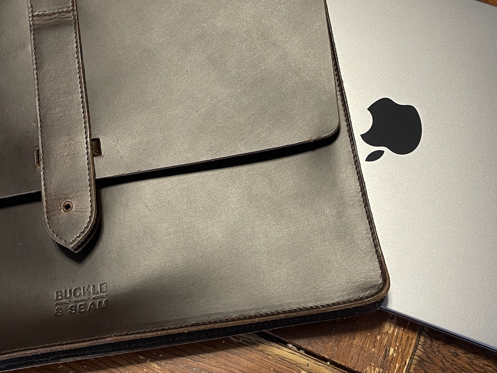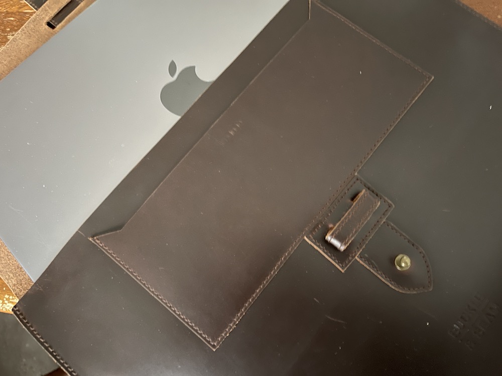 Das Sleeve Aspen ist aus schönem Leder und das 14 Zoll Gerät passt ideal hinein. Für Maus und Ladegerät sind allerdings kein Platz. Da das Sleeve samt MacBook Pro sowieso in die Aktentasche kommt, macht dies nichts, sollte aber beim Kauf vorher bedacht werden. Übrigens schöne Aktentaschen bietet Buckle and Seam auch an.