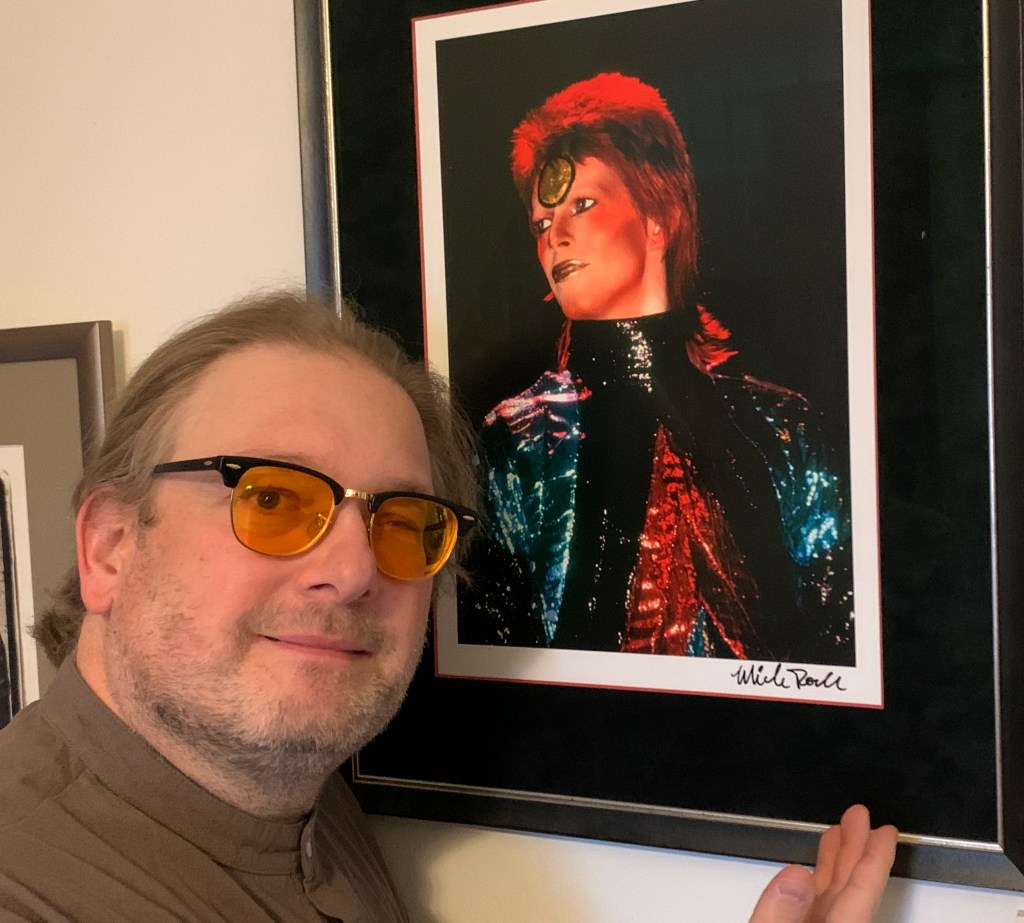 Ich hatte damals das Geld nicht. Jetzt werden die Preise explodieren. Irgendwann wollte ich aber dann doch einen Original Mick Rock haben und es wurde ein Foto aus der legendären Ziggy Stardust-Tour. Das Bild zeigt Bowie mit dem dritten Auge. Ich mag das Foto sehr.