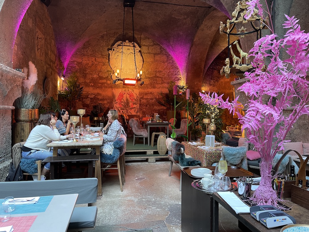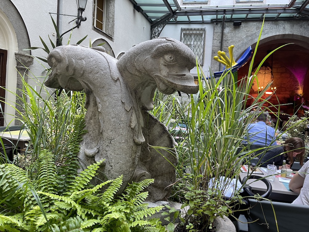 Während ich so in der Weinkarte schmökere, lehne ich mich zurück und beobachte den traditionsreichen Ort. Das älteste Gasthaus Europas – was gibt es hier für Geschichten zu erzählen. Hier gibt es Platz für Storytelling mit und ohne kulinarische Delikatessen. Das Stiftskulinarum befindet sich schließlich inmitten der Salzburger Altstadt in der Klosteranlage der Benediktiner-Erzabtei St. Peter. Im Jahre 803 wurde der St. Peter „Stiftskeller“ erstmals urkundlich vom Gefolgsmann Alkuin von York des Kaisers Karl des Großen erwähnt. Im 11. Jahrhundert lag der Fokus auf Weinhandel: Leopold VI. der Glorreiche nahm das Kloster St. Peter unter seinen Schutz und erlaubte die Ausfuhr von 40 Fuhren Wein aus Österreich pro Jahr. 1517 errichtete Abt Wolfgang Walcher einen Felsenkeller mit Zugang zum Stiftshof. Die ausgebrochenen Steine wurden beim Bau der Mühle der Stiftsbäckerei verwendet. Diese Stiftsbäckerei hatte ich 2014 besucht und darüber gebloggt.