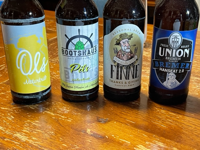 Mikro aus und Lauscher an. Petra Pekeler machte den Anfang. Sie kommt von einem kleinen Dorf im Oldenburger Münsterland. Zudem ist sie Gästeführerin der Tourist-Info Nordkreis Vechta und dort zuständig für geführte Kneipen- und Genusstouren. Und damit war sie die ideale Präsentatorin für die Biere der Region. Es gab vier Biere von Bootshaus Brauerei, Ols Brauerei, Union Brauerei Bremen und den Schnaps Alter Schwede Spezial Kräuterlikör. Pekeler erzählte die Geschichte der Biere, stellte Fragen an die Teilnehmer der Runde – sehr schöne und wichtige Didaktik in einem Online-Event.
