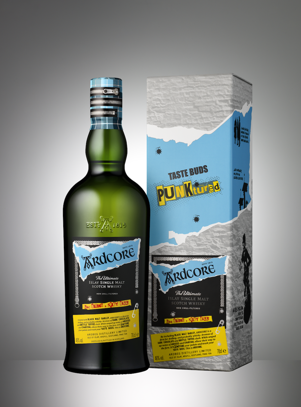 Und es gibt neue Getränke: Wie gewohnt wird es in diesem Jahr auch wieder zwei limitierte Editionen geben: Der Ardcore Committee Release für Mitglieder des Ardbeg Committees am 26. April und die Ardcore Limited Edition, die ab dem 17. Mai erhältlich sein wird. Alle Fans, die nach Islay reisen, können sich auf Drams, „Rocktails“, einen Tattoo-Salon und viel punkige Live-Musik freuen. Ich würde gerne mal nach Islay, aber den Tattoo-Salon würde ich mir sparen, dafür schön Musik hören und dem Storytelling lauschen. Und das geht so: Denn Ardcore knüpft eine Verbindung zu Islays kaum bekannter Punk-Vergangenheit und ehrt „PUNK ELLEN“ – den in Vergessenheit geratenen Spitznamen des Hafens von Islay in den 1970ern Jahren. Erstmals in der Geschichte von Ardbeg ist die Abfüllung aus tiefschwarz geröstetem Gerstenmalz destilliert – Ardcore ist äußerst unkonventionell, unverwechselbar und sehr gehaltvoll. Ein Tropfen, der sein Herz auf der Zunge trägt – sein schwarzes Herz, mit Noten von Holzkohle, süßem Rauch, Anis und dunkler Schokolade.