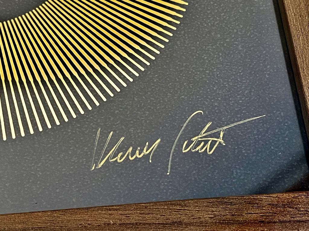 Deus Arrakis heißt das Album und ich habe mir die auf 500 Exemplare limitierte Sammler-Box geleistet. Ich habe die Nummer 441. Sie enthält drei goldene Vinyl-Schreiben, die CD, einen Pin sowie Sand (!) und ein gerahmtes Artwork mit Autogramm vom Meister. Für letzteres suche ich noch einen Ehrenplatz in meiner Bleibe. Es gibt die CD und Vinyl auch einzeln. Die Box war schnell ausverkauft.