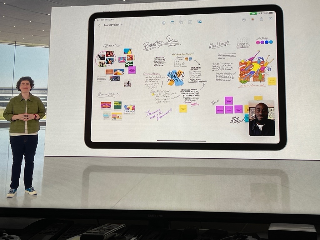iPad rückt weiter an Notebook heran Das Thema Zusammenarbeit wird wohl in den kommenden Betriebssystemen groß geschrieben. Es gab einige neue Features dazu. Wie beispielsweise erscheint mir Stage Manager für meine tägliche Arbeit am Mac und iPad sinnvoll. Stage Manager organisiert automatisch geöffnete Apps und Fenster, damit ich mich auf meine Arbeit konzentrieren kann und trotzdem alles im Überblick behalte. Das Fenster, in dem gerade gearbeitet wird, wird prominent in der Mitte angezeigt, und andere geöffnete Fenster erscheinen auf der linken Seite, so dass ich schnell und einfach zwischen den Aufgaben wechseln kann. Ich kann Fenster auch zusammenführen, wenn sie an bestimmten Aufgaben oder Projekten arbeiten, für die ich unterschiedliche Apps brauchen. Da ich sehr viel am iPad arbeite, ist das für mich ein sehr wichtigstes Feature im neuen PadOS. Wenn ich es mir überlege, dann ist Stage Manager auch ein wichtiges Features für eine AR-Brille von Apple, die (noch) nicht vorgestellt wurde.