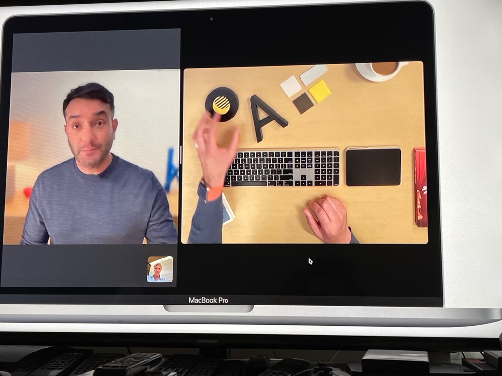 Kameraübergabe für Schulungen unterwegs Für meine Online-Seminare unterwegs freue ich mich auf das Feature Kameraübergabe. Ich kann mein iPhone mit dem MacBook Pro koppeln und das iPhone als Webcam nutzen. Studio Light ist für iPhone 12 und sorgt dann dafür, dass ich kein mobiles Ringlicht mehr in den Rucksack packen muss. Und Desk View ist eine Art Dokumentenkamera, die meinen Schreibtisch abbildet. Für mein Heimstudio werden ich Kameraübergabe nicht nutzen, denn die drahtlose Verwendung von Kameraübergabe erfordert einen Mac und ein iPhone oder iPad mit aktiviertem WLAN und Bluetooth. Beide Geräte müssen mit der gleichen Apple ID mit Zwei-Faktor-Authentifizierung angemeldet sein. Ich streame zu Hause aus dem Studio über LAN und damit ist Kameraübergabe nicht zu gebrauchen. Meine Kameras sind über Blackmagic ATEM mini via USB-C angeschlossen. Aber für Schulungen unterwegs ist es sehr interessant