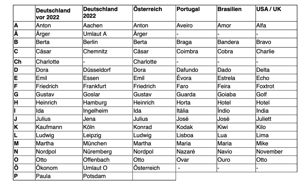 Da kommt eine aktuelle Meldung von Babbel genau zur richtigen Zeit. Damit es beim Telefonieren nicht zu abenteuerlichen Rechtschreibfehlern bei Namen oder Anschrift kommt, gibt es das sogenannte Buchstabier-ABC: „M wie Martha, nicht N wie Nordpol!“. Und es stellt sich die Frage: Wie lautet das Buchstabier-ABC in anderen Ländern und warum?