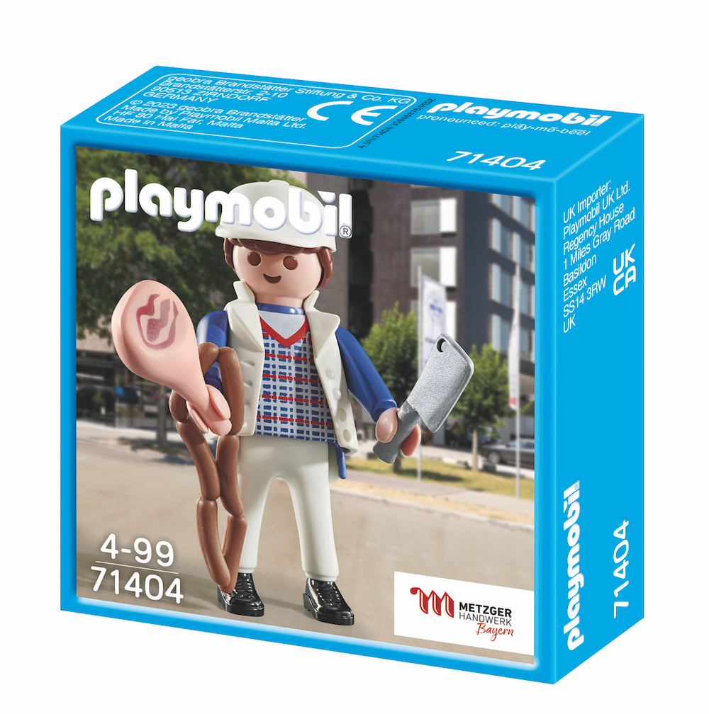 „Wir suchten eigentlich ein Giveaway für unsere Ausbildungsmessen. Ein Mitbringsel, dessen Marke jeder kennt und das weiterhin Groß und Klein zu unseren Ständen locken wird. Da fiel die Wahl schnell auf die bekannte Marke Playmobil“, so Landesinnungsmeister Konrad Ammon. Gesagt, getan. Nach ersten positiven Gesprächen konnte der Fleischerverband Bayern den Auftrag zur Produktion eines kleinen Metzgers als Sonderfigur in limitierter Auflage geben.