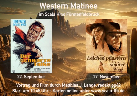 Nach meiner erfolgreichen phantastische Matinee im Scala Kino Fürstenfeldbruck wollen Geschäftsführer Markus Schmölz und ich einen weiteren Weg des Community-Aufbaus beginnen und starten im Scala-Kino eine Western Matinee. Der Auftakt macht John Fords wichtigster Western Der schwarze Falke von 1956. Wir besprechen und zeugen den Film am Sonntag, 22. September um 10:45 Uhr im Scala. Karten gibt es hier.