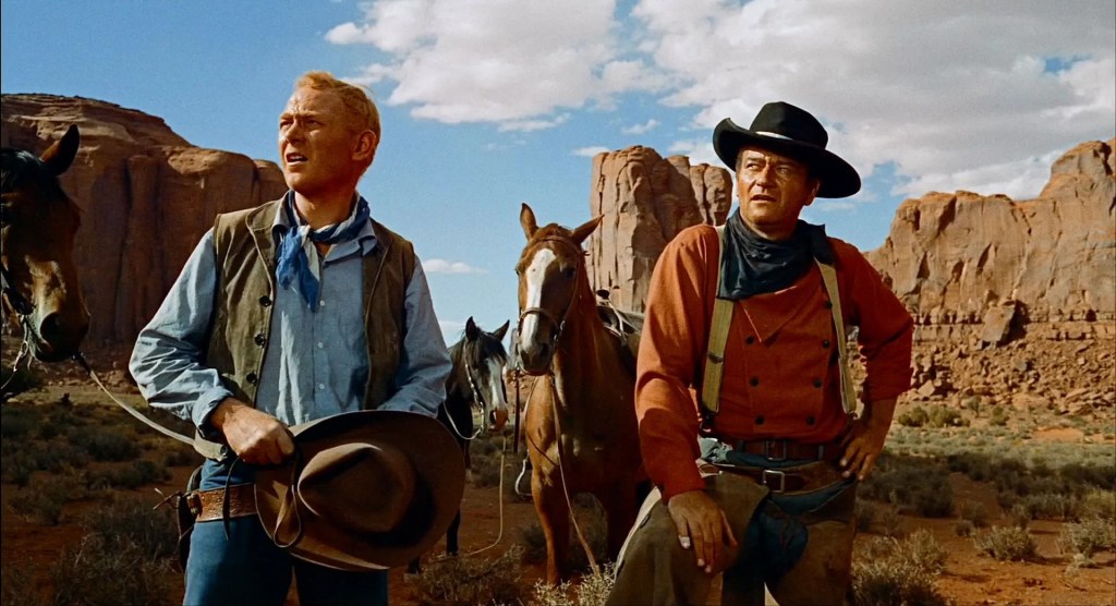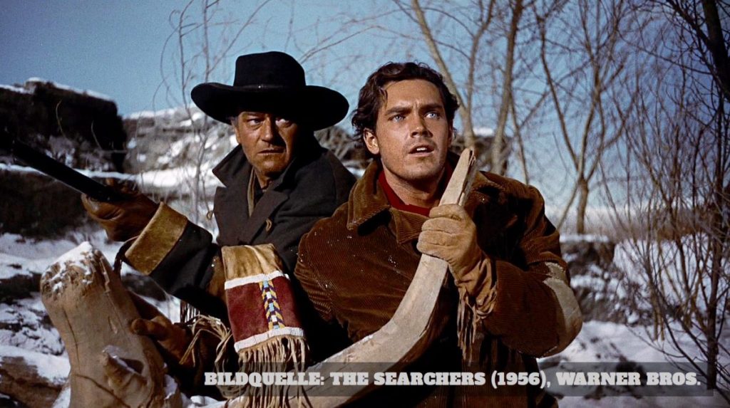 Ethan Edwards ist eine komplexe Figur, die von Rache und Hass getrieben wird. Seine rassistischen Einstellungen gegenüber den Native Americans sind tief verwurzelt und beeinflussen seine Handlungen maßgeblich. Ethans Obsession, Debbie zu finden, ist weniger von familiärer Liebe motiviert als von dem Wunsch, das zu zerstören, was er als „verunreinigt“ betrachtet. Seine innere Zerrissenheit wird durch seine Unfähigkeit symbolisiert, sich in die Gesellschaft zu integrieren, was ihn zu einem ewigen Außenseiter macht.