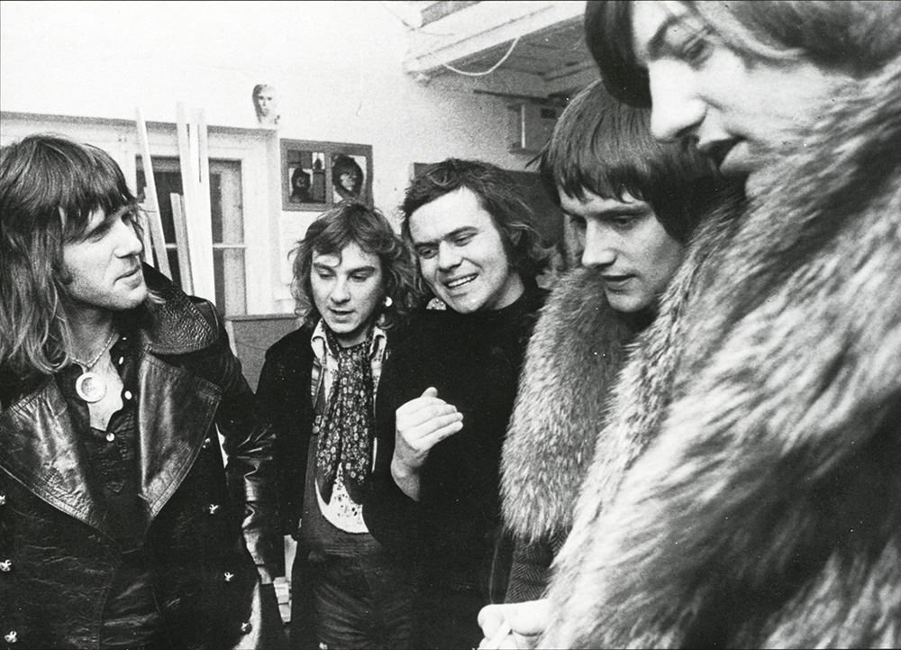 Nach seiner Zeit bei King Crimson arbeitete Sinfield mit verschiedenen Bands und Musikern zusammen. Er schrieb Texte für Emerson, Lake & Palmer, darunter das epische Werk “Karn Evil 9” auf dem Album Brain Salad Surgery (1973). Er war auch beim Besuch der Band bei HR Giger dabei. Dabei entstand das berühmte Foto. Der zweite von links ist Pete Sinfield.