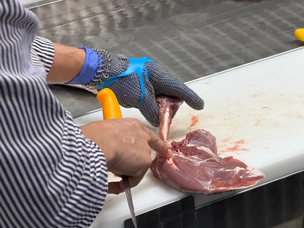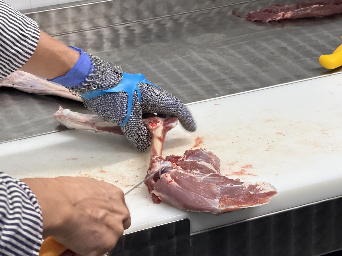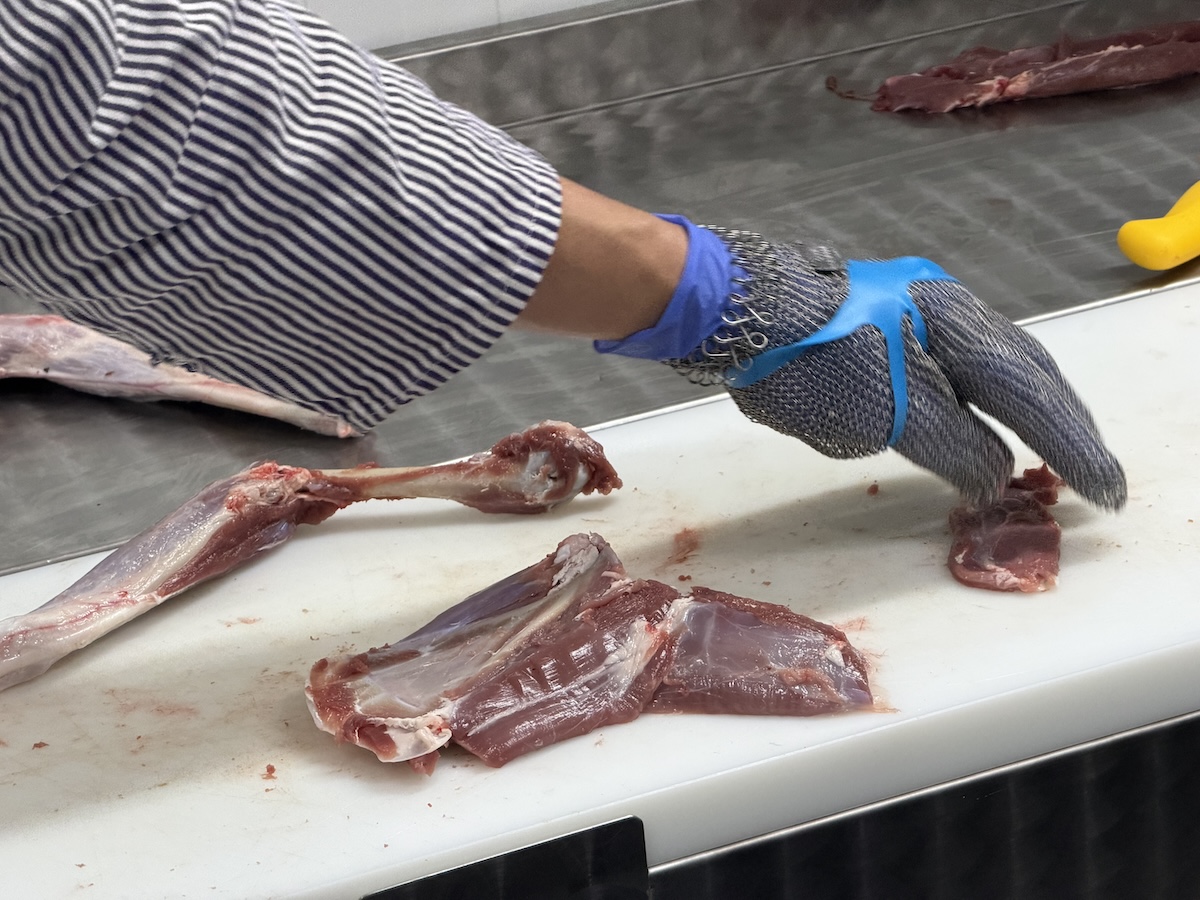 Beim Zerlegen folgt man stets den natürlichen Muskelsträngen und Sehnenlinien. Die Schnitte erfolgen entlang dieser Strukturen, damit möglichst wenig Fleisch beschädigt wird. Überflüssiges Fett, Sehnen und Häutchen werden sorgfältig entfernt, da sie den Geschmack beeinflussen können. Nach dem Zerteilen werden die Stücke beschriftet, vakuumiert oder kühl gelagert.