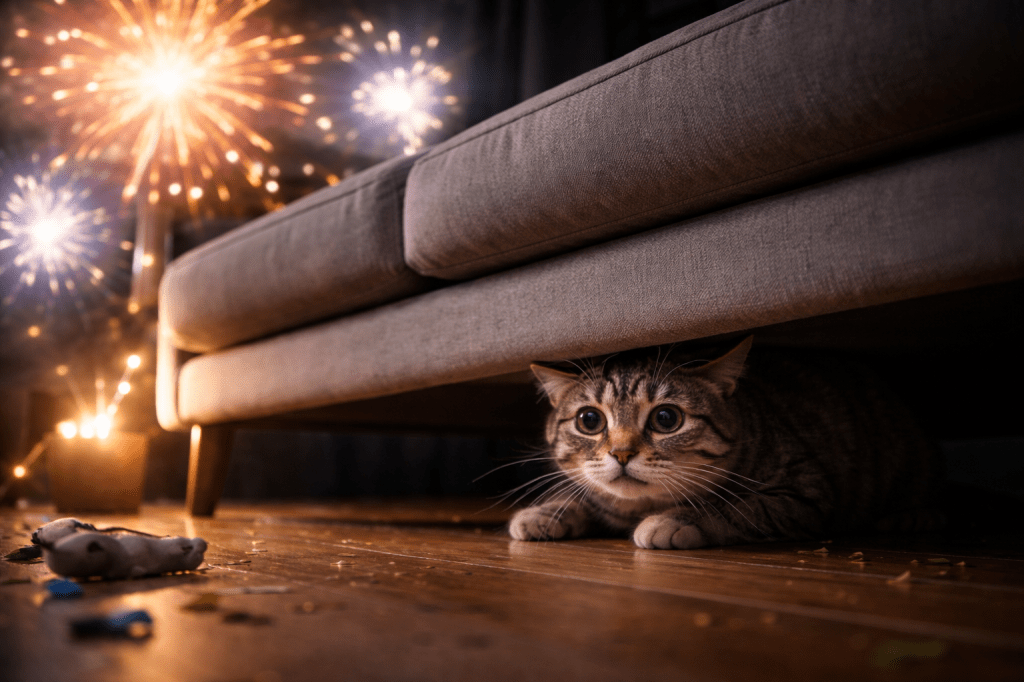 Was in der Silvesternacht passiert: 5.000+ Vögel sterben durch Kollisionen (Gebäude/Autos), Winterschläfer wachen auf und erfrieren (Igel, Siebenschläfer), 70% aller Haustier-Vermisstenanzeigen kommen am 1. Januar.