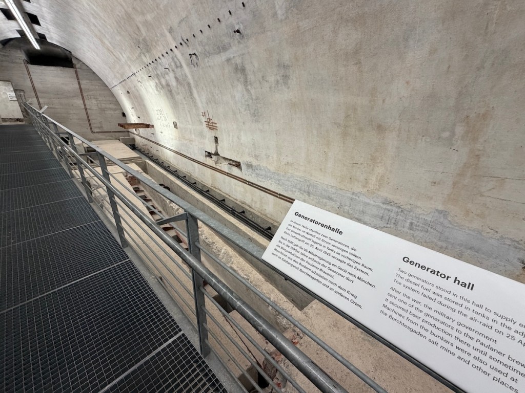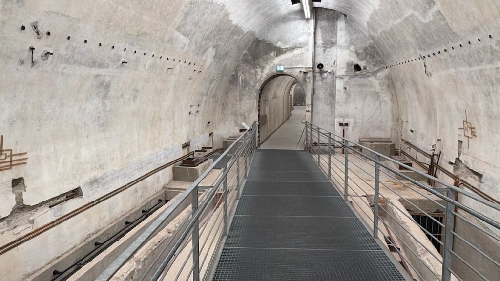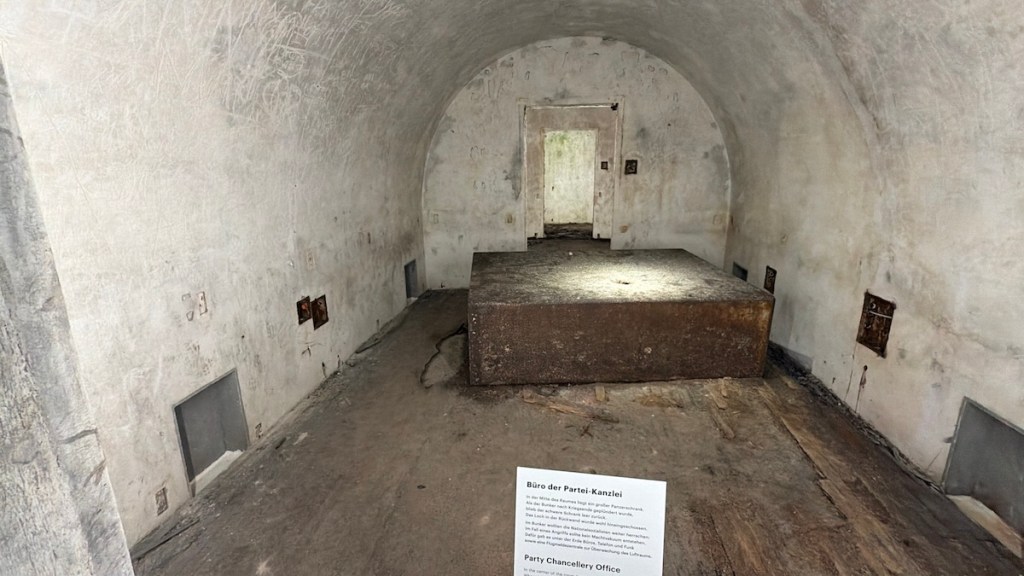 Von Anfang an bezog die Dokumentation die originalen Bunker in ihr Museumskonzept ein. Ein Teil der weitläufigen Untergrundanlage – insbesondere die Stollen unter dem ehemaligen Hotel Platterhof bzw. Gästehaus Hoher Göll, auf dessen Fundament der Museumsbau errichtet wurde  – ist für Besucher seither zugänglich. Über das Museumsgebäude gelangt man in einen rund 200 Meter langen Bunkerabschnitt, der heute als authentisches Ausstellungsobjekt dient. Dieser Bereich umfasst u.a. die ehemaligen Büroräume der NSDAP-Kanzlei am Obersalzberg (teils mit originalen Einbauten) sowie Verbindungsstollen mit einigen Nebenräumen wie Vorratskellern. Schon 1999 stieß diese Bunker-Teilausstellung auf großes Interesse, so dass 2006 ein zusätzlicher Ausstellungsraum im Bunker für Wechselausstellungen ausgebaut wurde. Von 2017 bis 2023 war die Anlage wegen umfangreicher Erweiterungsarbeiten geschlossen, doch seit der Wiedereröffnung der Dokumentation (neue Dauerausstellung “Idyll und Verbrechen”) ist der Bunker wieder im Rahmen des Rundgangs zugänglich . Besucher passieren originale engen Gänge, sehen Gerätschaften und Relikte und stoßen auf erklärende Tafeln, die die Funktion jedes Abschnitts erläutern. So wird der historische Tiefbunker selbst zum Exponat, das die Geschichte des Ortes greifbar macht.