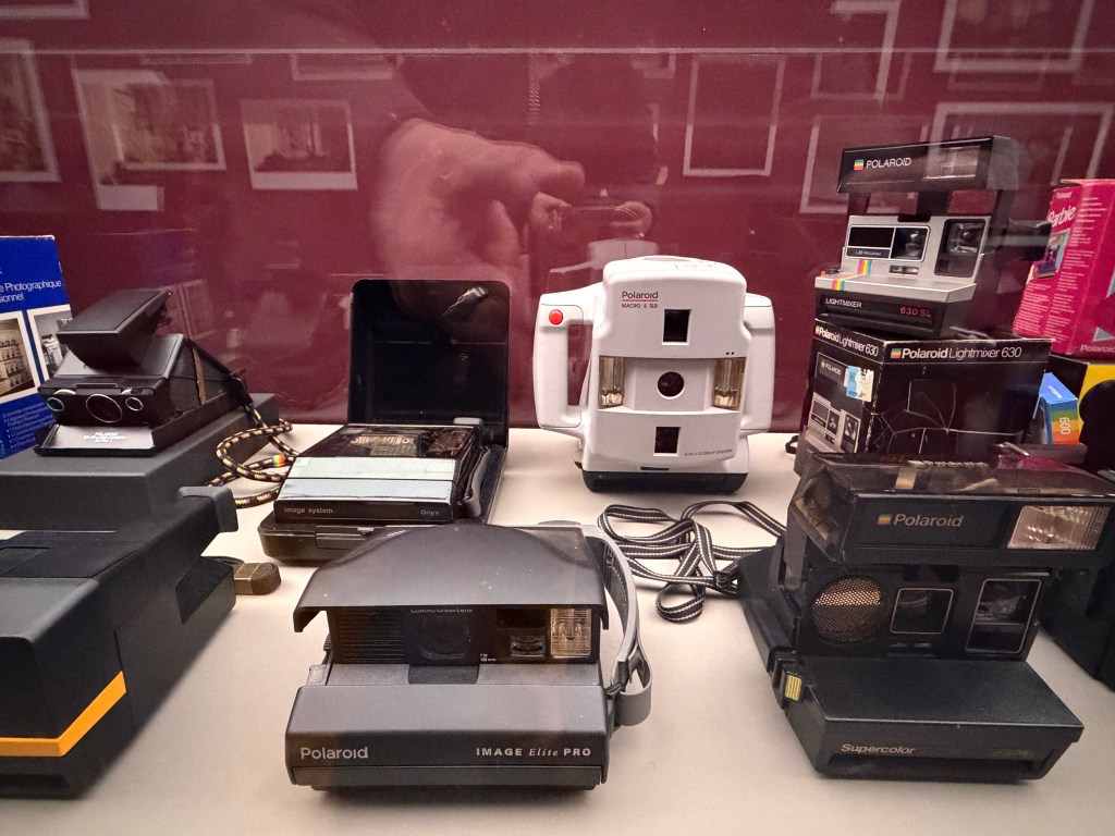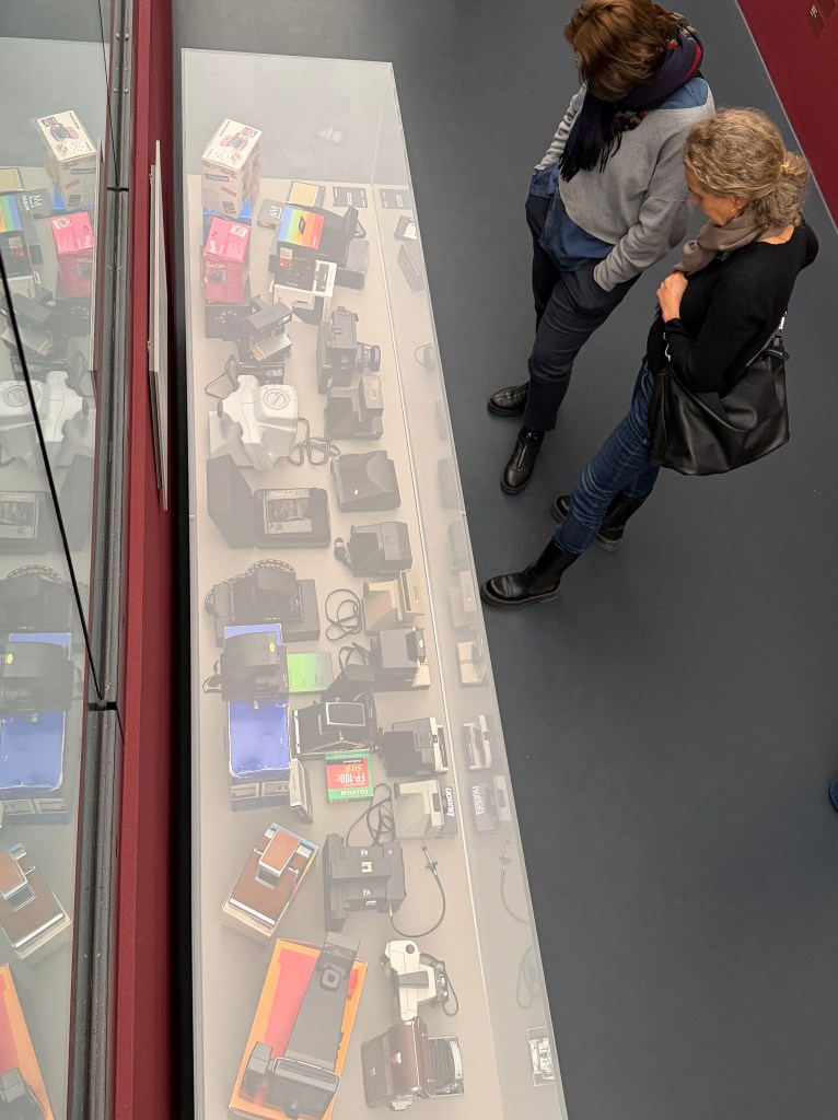 Es gibt auch eine Vitrine mit Polaroid‑Kameras: Eine Berliner Privatsammlung präsentiert diverse kleinere Polaroid‑Kameras, deren Formen und Funktionen den spielerischen Umgang mit der Sofortbildtechnik widerspiegeln. Dabei wird auch die Popularität der Geräte deutlich – von der Pocket‑Kamera bis zur klappbaren SX‑70 und neuere Modelle. Irgendwann besorge ich mir die I-2 noch.