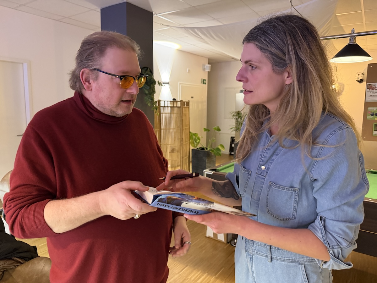 Gerne lese ich als Journalist Bücher von Kollegen. Die Klassiker haben es mir angetan: Peter von Zahn, Lothar Loewe, Gerd Ruge, Peter Scholl-Latour. Und natürlich auch moderne Reportagenbücher, weil sie mir auf einen Land oder Konflikt anders näher bringen als klassische Sachbücher. Und als ich hörte, dass die Zeit-Kollegin Ronja von Wurmb‑Seibel bei uns im Landkreis als Land- und Kreisrätin antritt, holte ich ein Buch von ihr aus dem Archiv und ließ es mir in meinem zweiten Wohnzimmer im Bistro Sixtyfour signieren. Dabei habe ich ihr Buch „Ausgerechnet Kabul. 13 Geschichten vom Leben im Krieg“ wieder gelesen.