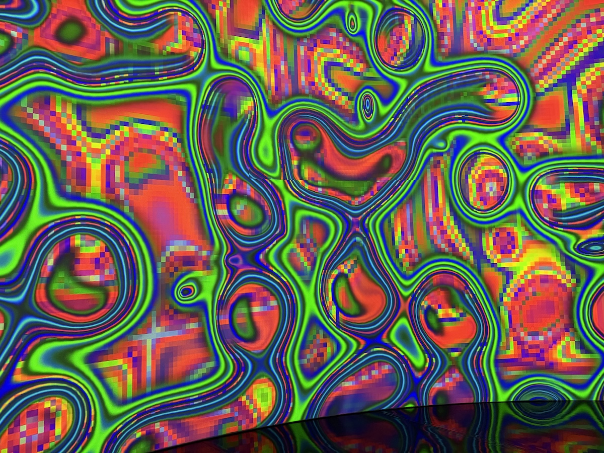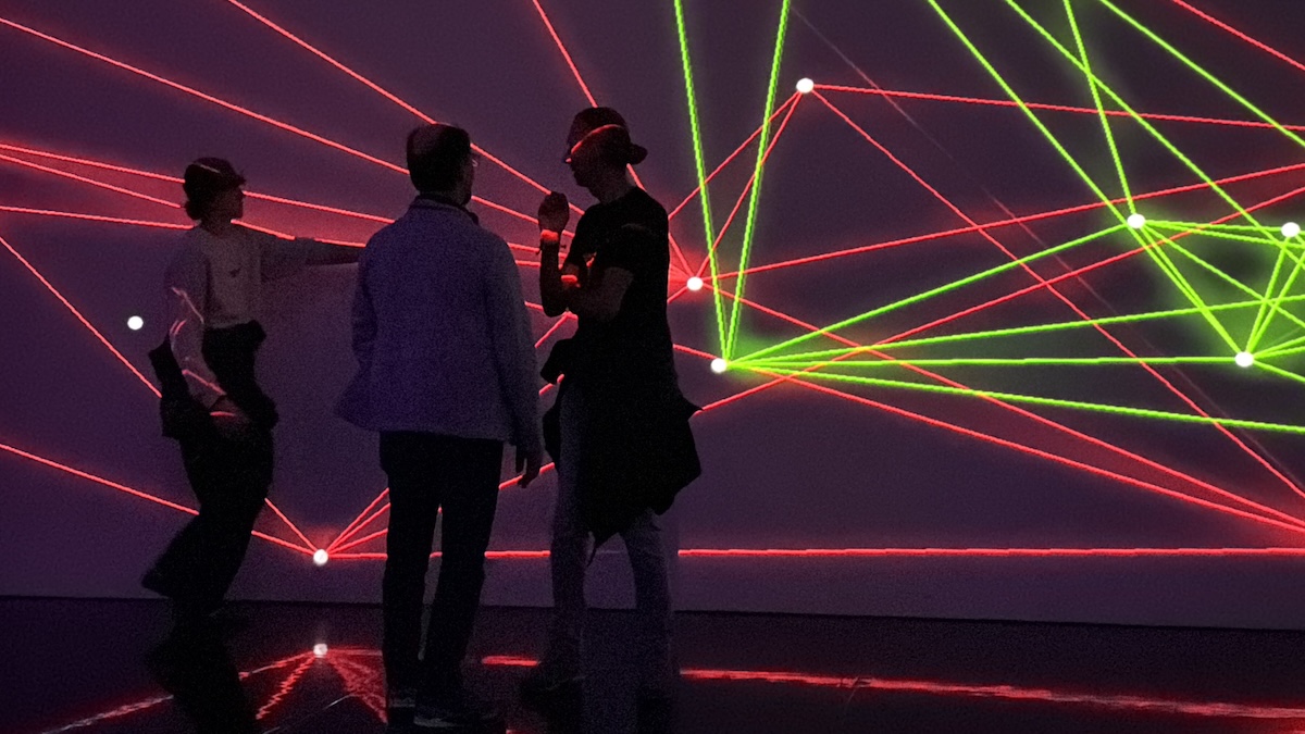 Besucher greifen mit ihren Körpern unmittelbar in diese digitalen Ökosysteme ein – Sensoren erfassen Bewegungen im Raum, die Software reagiert darauf, verändert Formen, Farben und Bewegungsrichtungen der Projektionen und macht so das Zusammenspiel von System und Zufall ästhetisch sichtbar.