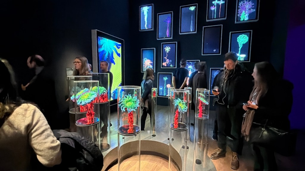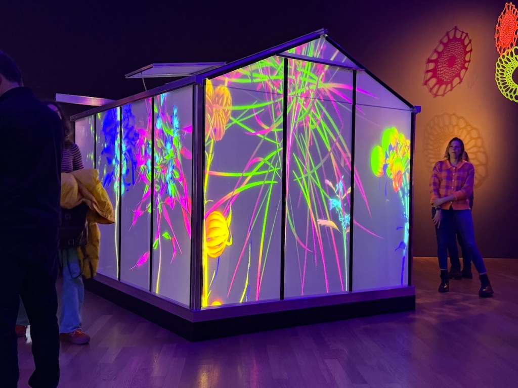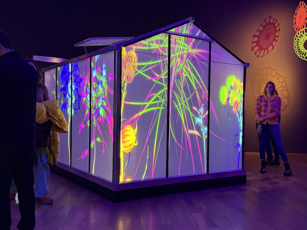 Als klar hervorgehobenes „Signature Piece“ gilt das digitale Gewächshaus „In Vitro Pixel Flowers“ beziehungsweise „Pixel Flowers“: Über eine Online-Plattform und Terminals vor Ort entwerfen Erwachsene und Kinder eigene virtuelle Blumen, die anschließend als Teil eines leuchtenden, projizierten Gartens im Ausstellungsraum erscheinen. Dieser virtuelle Garten wächst während der Laufzeit der Schau kontinuierlich weiter und macht die kollektive Beteiligung des Publikums sichtbar. Ein weiteres zentrales interaktives Erlebnis ist die Installation „Meta-Nature AI“, in der KI-gestützte, florale und landschaftsartige Strukturen den Raum füllen und sich durch Algorithmen permanent verändern, während zugleich die Bewegungen der Besucher die Atmosphäre der Projektionen