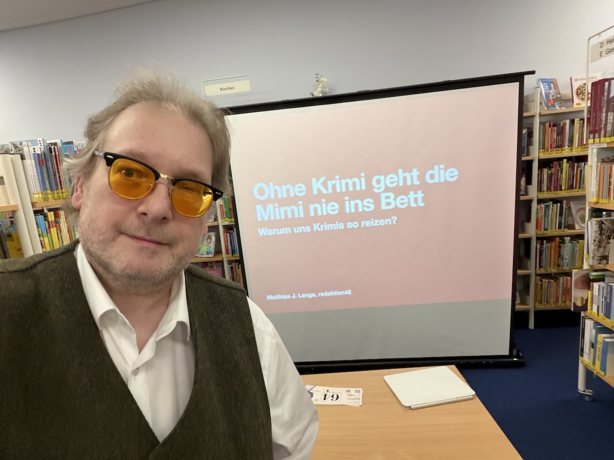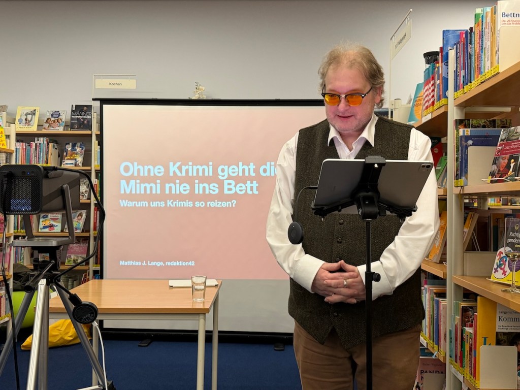 Unter dem augenzwinkernden Titel „Ohne Krimi geht die Mimi nie ins Bett“ widmete ich sich der Frage, warum Krimis bis heute eine so große Faszination ausüben. Dabei spannte ich den Bogen von den Anfängen der Kriminalliteratur im 19. Jahrhundert bis zu modernen Thrillern, Serien und Polizeifilmen. Hier die Aufzeichnung: