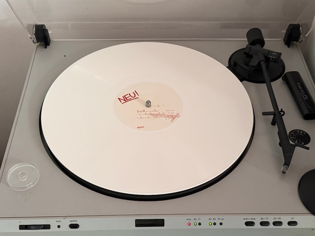Überhaupt ist „Neu!“ kein Album, das mit traditionellen Songstrukturen beeindrucken will. Viele Stücke wirken wie Skizzen, Versuche oder Klangideen, doch genau das macht seinen Reiz aus. „Sonderangebot“, „Weissensee“ oder „Im Glück“ zeigen, wie stark Neu! mit Stimmung arbeiten: mal verspielt und entrückt, mal spröde und fast mechanisch, dann wieder überraschend zart. Besonders faszinierend ist dabei die Spannung zwischen Mensch und Maschine – einerseits wirkt vieles kontrolliert, repetitiv und fast industriell, andererseits steckt in diesen Aufnahmen etwas Improvisiertes, Rohes und sehr Körperliches.