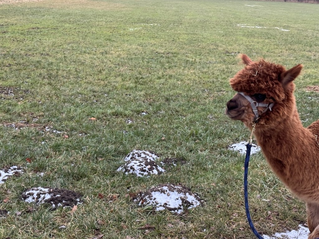 Fast zwei Stunden bin ich abwechselnd mit Anton und Ludwig durch die Kälte gelaufen. Anton und Ludwig sind ganz brav neben mir her getrottet, während ich mit ihnen gesprochen habe. Geantwortet haben sie nicht, denn Anton und Ludwig sind Alpakas.