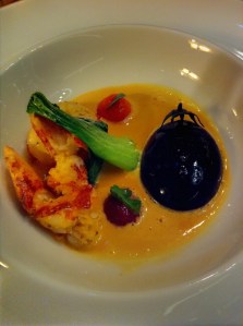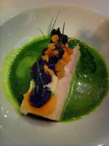 Aber nun zum Anlass des Abends: Wine & Dine. Es begann mit dem Gruß aus der Küche – Amuse Bouche dazu 2022 Pinot Blanc de Noir Sekt trocken