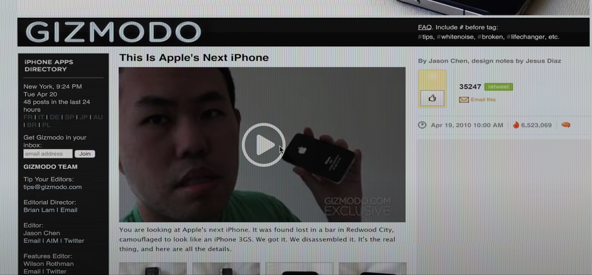 Das Tech-Blog Gizmodo erwarb den Prototypen für 5.000 US-Dollar. Die Redaktion zerlegte das Gerät und veröffentlichte Fotos sowie eine detaillierte Analyse. Sie deckte dabei Designänderungen auf, darunter ein flacheres Gehäuse, eine Frontkamera (damals neu für iPhones) und einen verbesserten Bildschirm. Das iPhone 4 war wirklich eine Revolution und ein Schritt nach vorne in der mobilen Kommunikation.