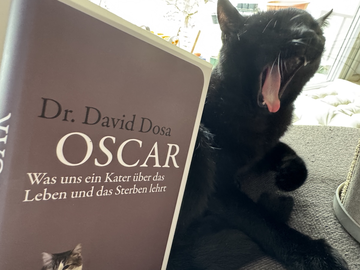 Und so lese ich auch immer wieder Bücher rund um die Katzen. Ein Buch, was ich verschlungen habe, war Oscar Das Buch Oscar von Dr. David Dosa erzählt die berührende Geschichte einer außergewöhnlichen Therapiekatze namens Oscar, die im Steere House Pflege- und Rehabilitationszentrum in Rhode Island lebt. Oscar besitzt die bemerkenswerte Fähigkeit, zu erkennen, wann Patienten kurz vor ihrem Tod stehen. In diesen Momenten bleibt er an ihrer Seite, spendet Trost und bietet sowohl den Sterbenden als auch ihren Angehörigen emotionale Unterstützung. Das hat mich bewegt, denn auch meine beiden Katzen haben ein Gespür, wenn sie mich aufheitern müssen. Sie kommen und kuscheln.