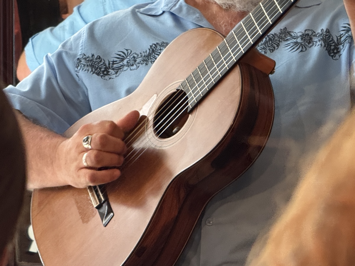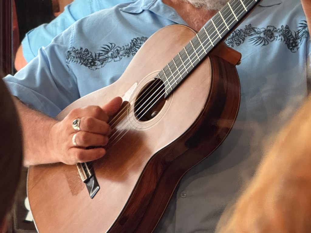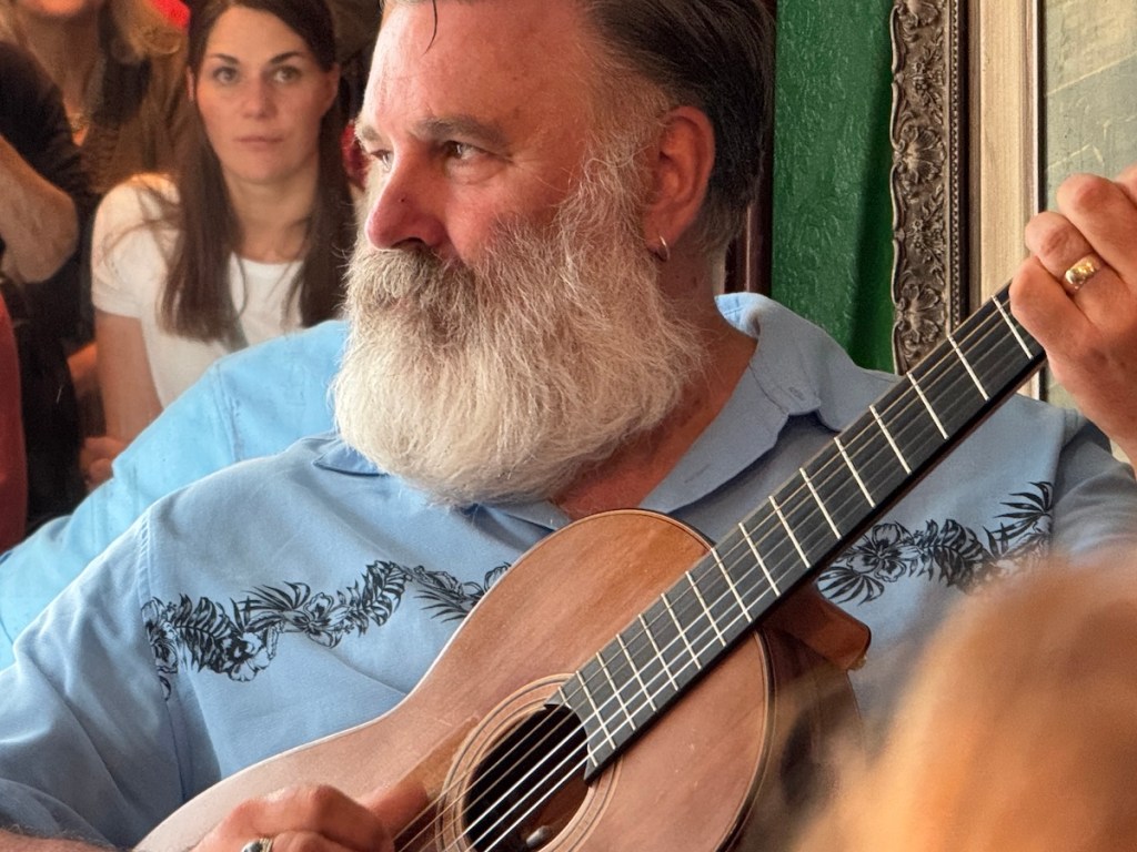 Bei Paul Armfield hatte ich das Gefühl, nicht nur einem Musiker, sondern auch einem Geschichtenerzähler und feinsinnigen Beobachter zuzuhören. Die Atmosphäre ist dadurch fast familiär, und am Ende des Münchner Konzerts blieb ein Gefühl von Nachdenklichkeit und innerer Ruhe zurück. Viele Songs handelten von Zuhause („Home“), Bibliotheken, Bäumen – alles Stoff für nachdenkliches, fast meditatives Flair. Sein britischer Humor zeigte sich in Wortspielen und charmanten Kommentaren. Paul Armfield überzeugt mit einer warmen, entspannten Bühnenpräsenz. Er wirkte erfahren und souverän, ohne dabei distanziert zu sein. Seine ruhige Ausstrahlung und die Gelassenheit, mit der er seine Songs präsentiert, schaffen eine offene und einladende Atmosphäre, in der sich das Münchner Publikum auf dem Privatkonzert wohlfühlte. Ein Künstler zum Anfassen.