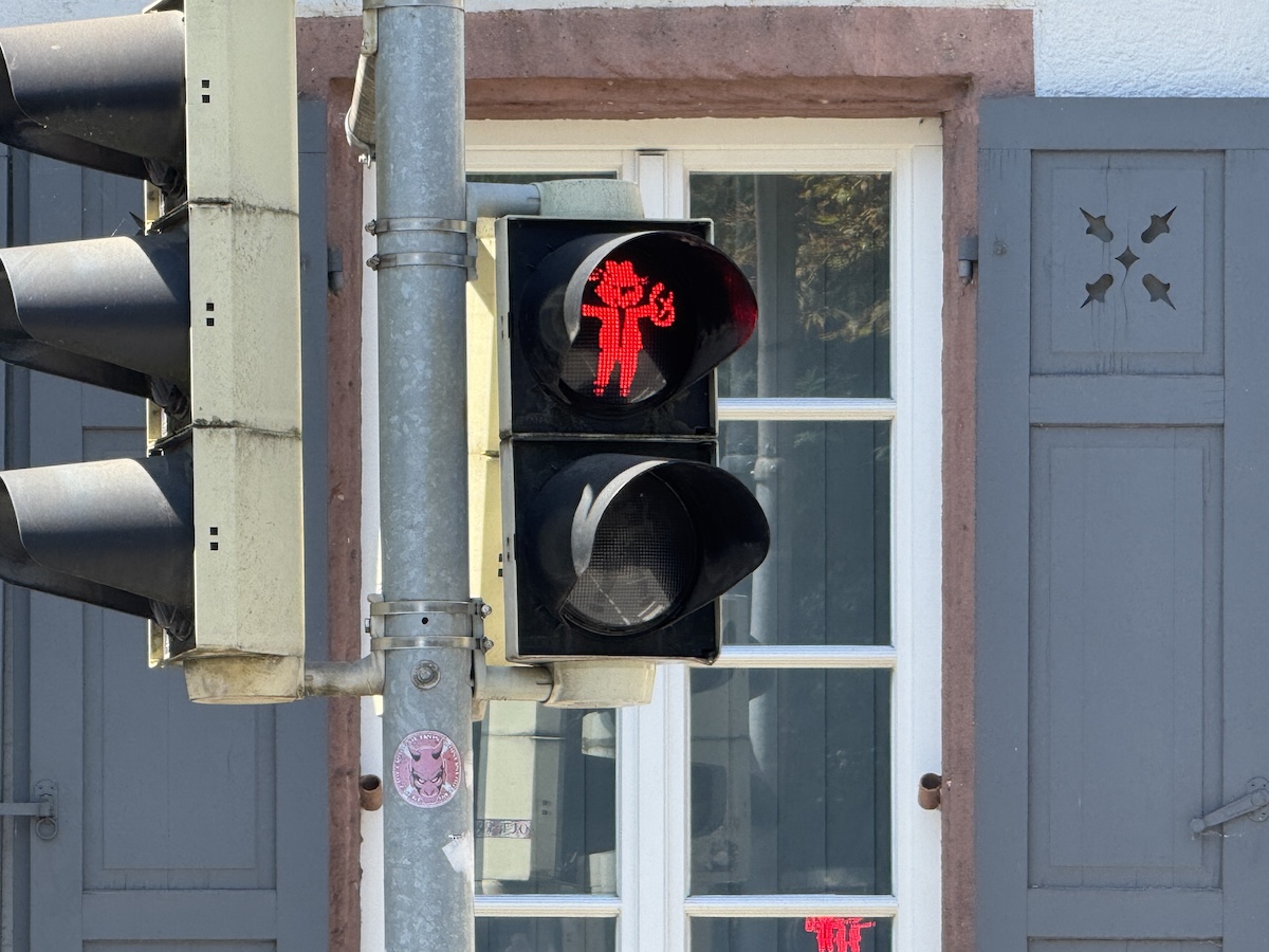 Diese ortsspezifische Gestaltung trägt zur Identifikation mit der Stadt bei – analog zu anderen Städten, die lokale Figuren wie das Weinkönigin-Motiv in Neustadt oder das Mainzelmännchen in Mainz nutzen, findet der Brezelbu zunehmend Beachtung. Verkehrspsychologische Überlegungen legen nahe, dass solche originellen Ampelmotive die Aufmerksamkeit erhöhen – das Signal wird bewusster wahrgenommen und emotional verankert. Ich wurde beim Fotografieren fast von einem Radfahrer über den Haufen gefahren, soviel zur erhöhten Aufmerksamkeit.