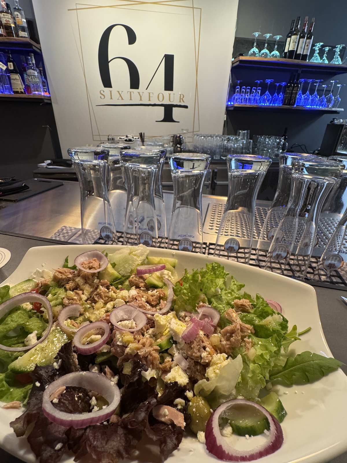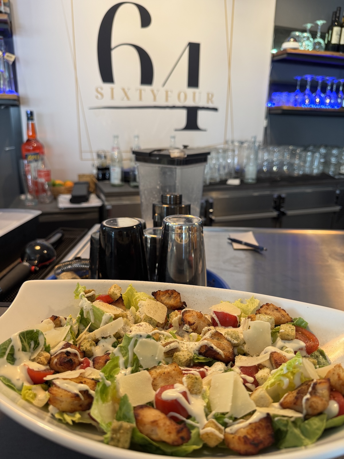 Die Gastlichkeit spiegelt sich in jeder Geste des freundlichen Personals wider. Das Team stimmt einfach. Ich erinnere mich an scherzhafte Diskussionen darüber, wie früher der Service in einer Wirtschaft als „Fräulein“ bezeichnet wurde. So etwas geht heute natürlich auf keinen Fall. Mit aufmerksamem Service und ehrlicher Herzlichkeit sorgen Gastgeber Uwe Flügel und seine Frau dafür, dass sich jeder Gast rundum willkommen fühlt. Ob ein erfrischendes Bier, ein entspanntes Glas Wein, überraschend raffinierte Snacks oder gemeinsame Abende bei guten Gesprächen – hier öffnet sich das SixtyFour als Wohnzimmer und Begegnungsstätte der Gemeinde.