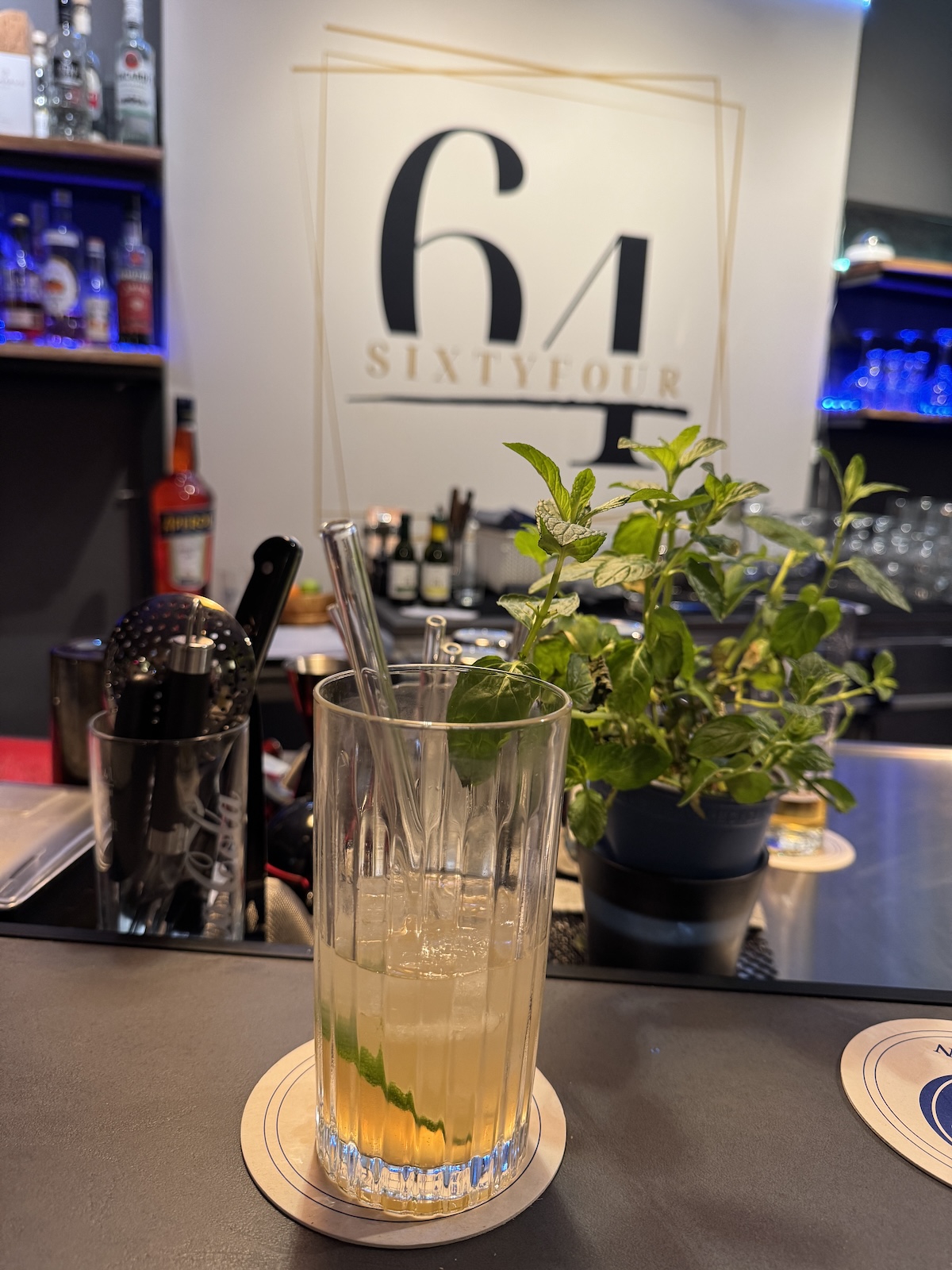 Was mich besonders freut: Das SixtyFour hat eine gut sortierte Whiskey-Bar. Hier beweist Uwe Flügel bei der Auswahl Geschmack beim „Wasser des Lebens“, sei es bei Single Malts oder Blends. Als Schottland-Fan ist das für mich immer ein Grund, hier zu ordern und zu probieren. Und – auch ganz wichtig: Es gibt eine geniale Auswahl an Cocktails mit und ohne Alkohol. Das Mixen der Getränke ist eine Augenweide. Ich trinke in der Regel nur den Long Island Iced Tea. Long Island Iced Tea ist ein Cocktail und enthält zu gleichen Teilen Rum, Wodka, Tequila, Gin und Orangenlikör, zu anderthalb Teilen Zuckersirup und Limettensaft – und wird mit Cola aufgefüllt. Obwohl der Name es vermuten lässt, ist kein Eistee enthalten.
