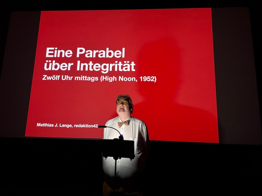 „Zwölf Uhr mittags“ („High Noon“) ist weit mehr als nur ein Western. Es ist ein Kammerspiel über Ehre, Verantwortung und den Preis, den ein Mensch zahlt, wenn er das Richtige tut – auch dann, wenn niemand sonst an seiner Seite steht. Fred Zinnemanns Film aus dem Jahr 1952, mit Gary Cooper in der Hauptrolle des Marshal Will Kane, hat sich tief ins kollektive Gedächtnis des Kinos eingebrannt. Er erzählt keine Geschichte von Reitern und Schießereien, sondern eine über moralische Standhaftigkeit – und über die erdrückende Stille, die entsteht, wenn Mut zum Alleingang wird. Hier ist die Aufzeichnung meines Vortrags: