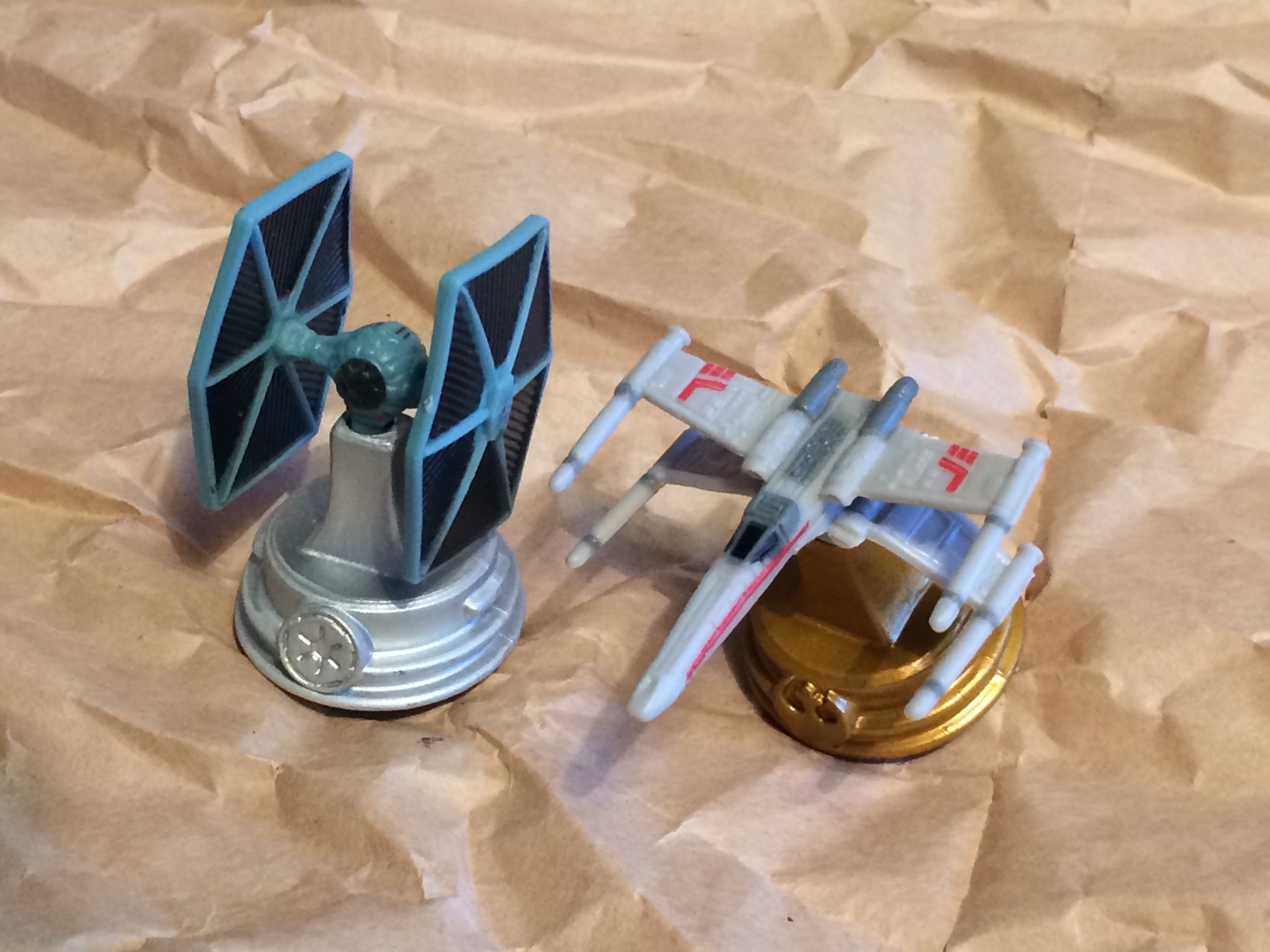 Die Zuordnung der Figuren bereitet mir bei aller Liebe zum Film aber Probleme. Ich bin die schlichten Schachfiguren gewöhnt und muss bei der figürlichen Darstellung ganz schön umdenken. Bei den Bauern fiel es mir noch leicht. Die Bauern sind entweder X-Wing-Fighter oder Tie-Fighter. Die Größe der Spielfiguren reicht von ca. 4 cm bis 9,5 cm.