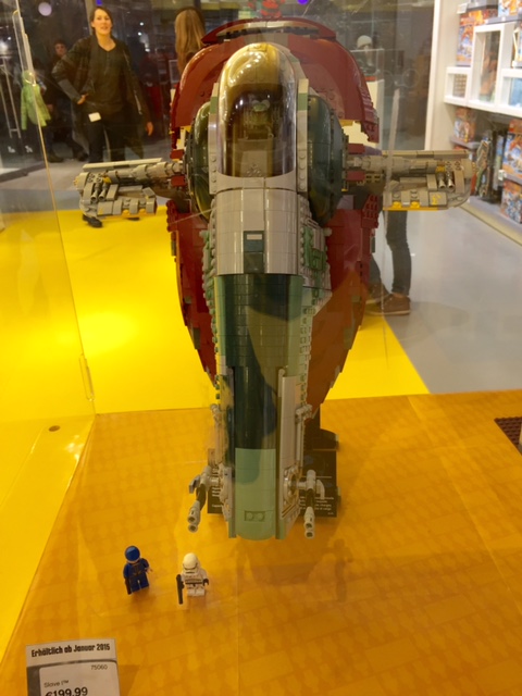 Das Jahr 2015 wird ein gutes Lego-Jahr. Soviel lässt sich schon sagen. Im Lego Retail Store in den Pasing Arcaden konnte ich ein Vorab-Modell des Slave I aus der Star Wars Collectors Serie in einer Vitrine bewundern, dass es ab Januar 2015 zu kaufen gibt.