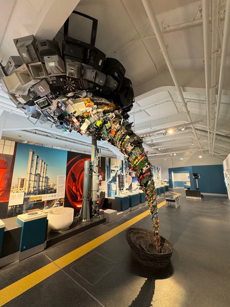 Unsere Familie trennt die Wertstoffe, versucht wenn möglich mit dem Rad, der Bahn oder öffentliche Verkehrsmittel zu fahren, wir setzen auf Solar und bemühen uns einen Teil zur Energiewende zu leisten. Natürlich könnte es noch immer mehr sein. Nachhaltigkeit ist wichtig und wie eindrucksvoll dieses Thema dargestellt werden kann, habe ich unlängst im Deutschen Museum gesehen. Es ist ein Nachhaltigkeitsbaum aus Elektronikschrott. Es geht um das Thema Recycling von Elektronik-Werkstoffen, das eindrucksvoll dargestellt wird.