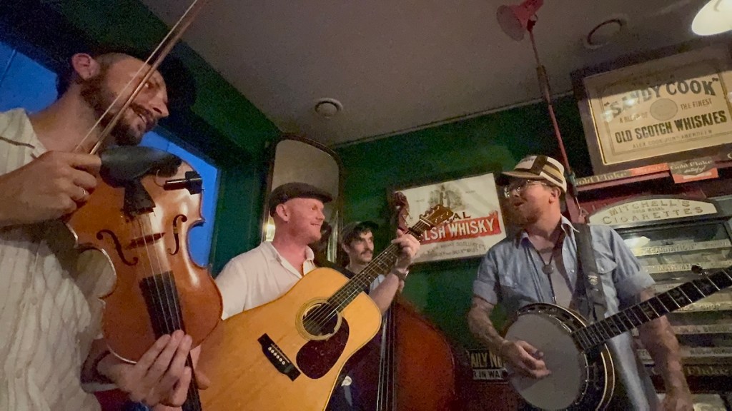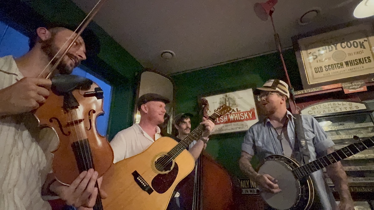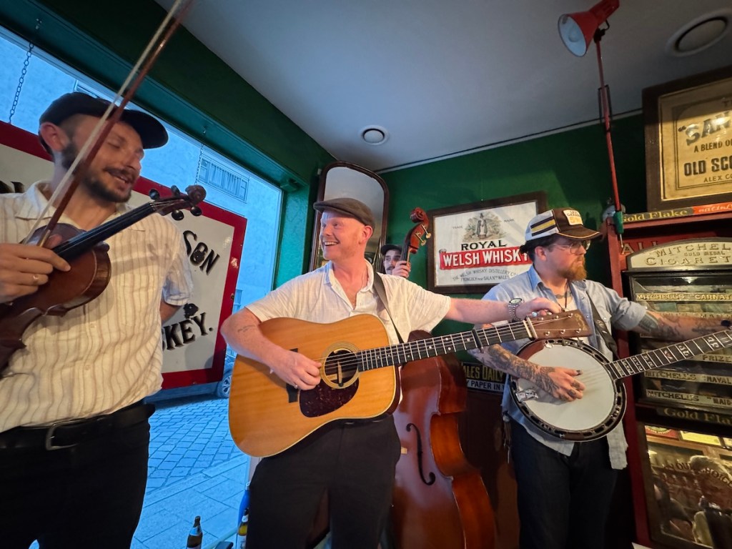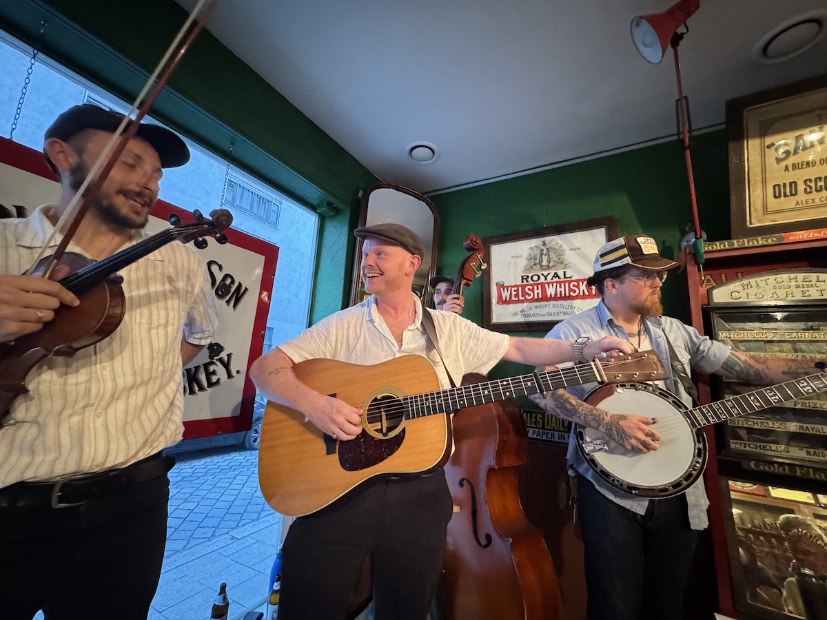 Die Taff Rapids Stringband aus Cardiff in Wales zählt für mich derzeit zu den spannendsten Vertreterinnen einer neuen europäischen Bluegrass-Szene, die amerikanische und keltische Wurzeln kreativ verschmilzt und auf internationalen Bühnen für Begeisterung sorgt. In München spielte die Band vor einem kleinen Publikum bei einem Privatkonzert. Die Band besteht aus vier erfahrenen Musikern: Darren Eedens (Banjo), Sion Russell Jones (Gitarre), David Grubb (Fiddle) und Clem Saynor (Kontrabass). Was die Gruppe schon auf den ersten Blick außergewöhnlich macht, ist ihr selbstbewusstes Bekenntnis zur Zweisprachigkeit und zur walisischen Kultur: Im sogenannten „Blŵgras“-Stil, ihrer eigenen Spielart des Bluegrass, finden sich nicht nur englische, sondern auch walisische Songtexte. Musikalisch verbindet das Quartett damit klassische Bluegrass-Einflüsse aus Nordamerika mit der Melodik und den Erzählmustern der keltischen Musiktradition, wodurch ein höchst eigenständiger, modernen und dennoch in beiden Genres tief verwurzelter Sound entsteht.