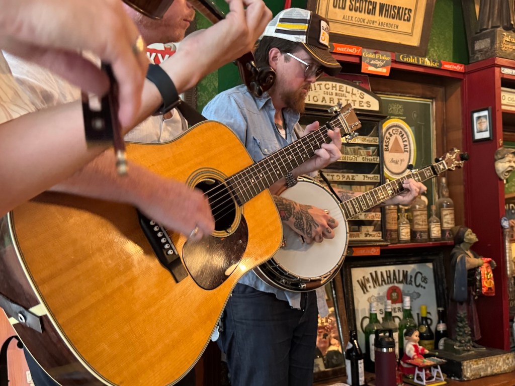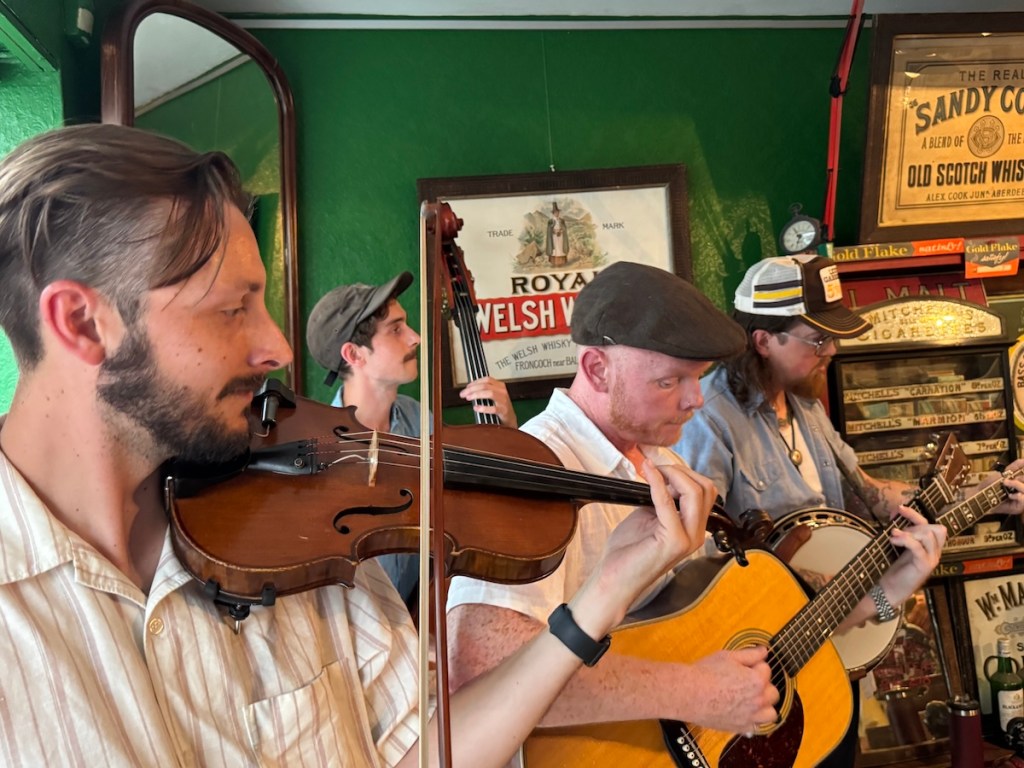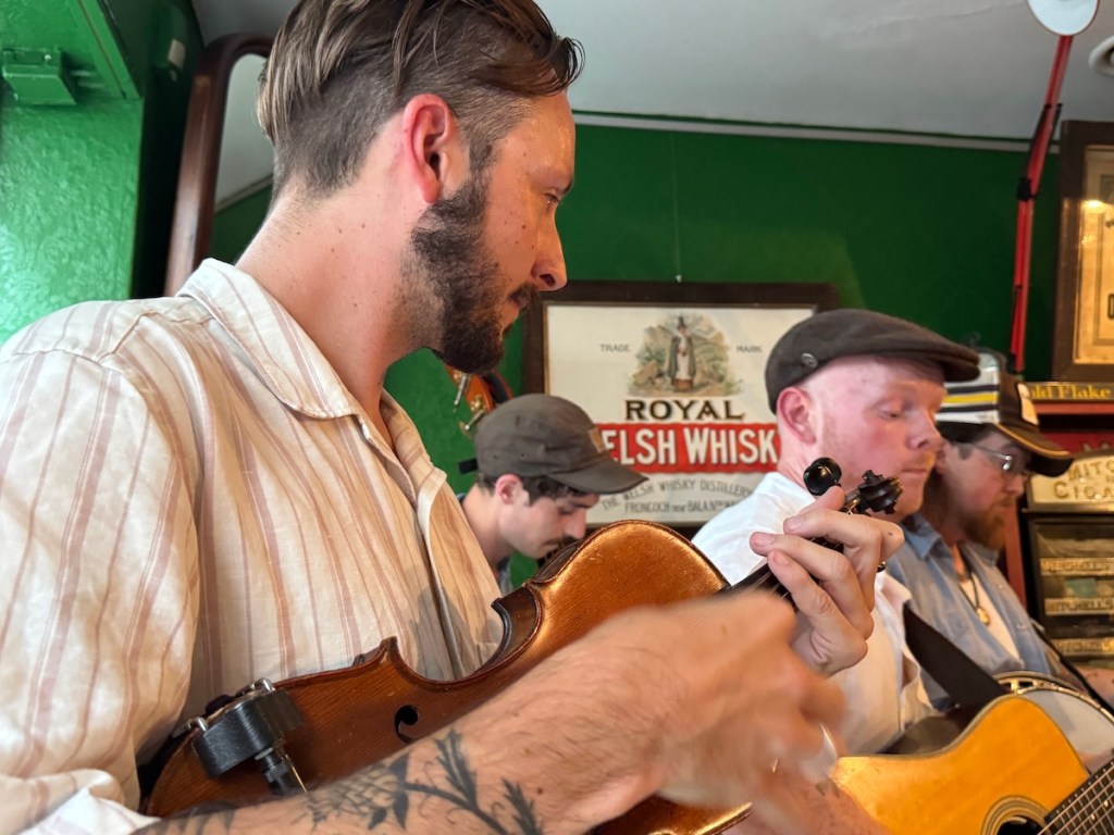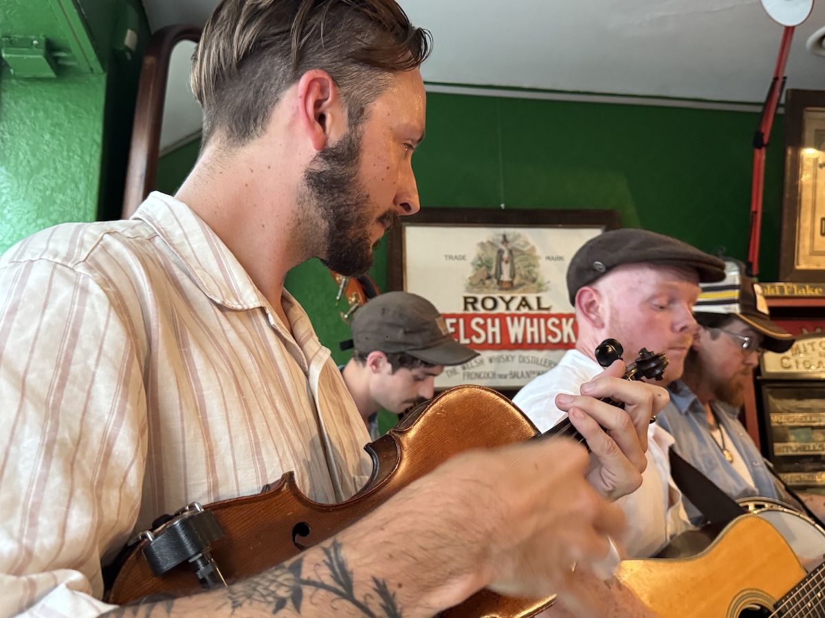 Die Taff Rapids Stringband aus Cardiff in Wales zählt für mich derzeit zu den spannendsten Vertreterinnen einer neuen europäischen Bluegrass-Szene, die amerikanische und keltische Wurzeln kreativ verschmilzt und auf internationalen Bühnen für Begeisterung sorgt. In München spielte die Band vor einem kleinen Publikum bei einem Privatkonzert. Die Band besteht aus vier erfahrenen Musikern: Darren Eedens (Banjo), Sion Russell Jones (Gitarre), David Grubb (Fiddle) und Clem Saynor (Kontrabass). Was die Gruppe schon auf den ersten Blick außergewöhnlich macht, ist ihr selbstbewusstes Bekenntnis zur Zweisprachigkeit und zur walisischen Kultur: Im sogenannten „Blŵgras“-Stil, ihrer eigenen Spielart des Bluegrass, finden sich nicht nur englische, sondern auch walisische Songtexte. Musikalisch verbindet das Quartett damit klassische Bluegrass-Einflüsse aus Nordamerika mit der Melodik und den Erzählmustern der keltischen Musiktradition, wodurch ein höchst eigenständiger, modernen und dennoch in beiden Genres tief verwurzelter Sound entsteht.