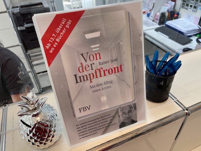 Ich empfehle diese Buch ausdrücklich, weil es hautnah und authentisch die Vorgänge um das Impfen aus der Sicht eines Impfarztes zeigt. Dr. Rainer Jund, HNO-Arzt aus Puchheim im Landkreis Fürstenfeldbruck und erfolgreicher Autor des eindringlichen Buches Tage in Weiß, hat vor kurzem seinen subjektiven Erlebnisbericht in Buchform Von der Impffront: Aus dem Alltag eines Arztes veröffentlicht aus dem Alltag eines Arztes.