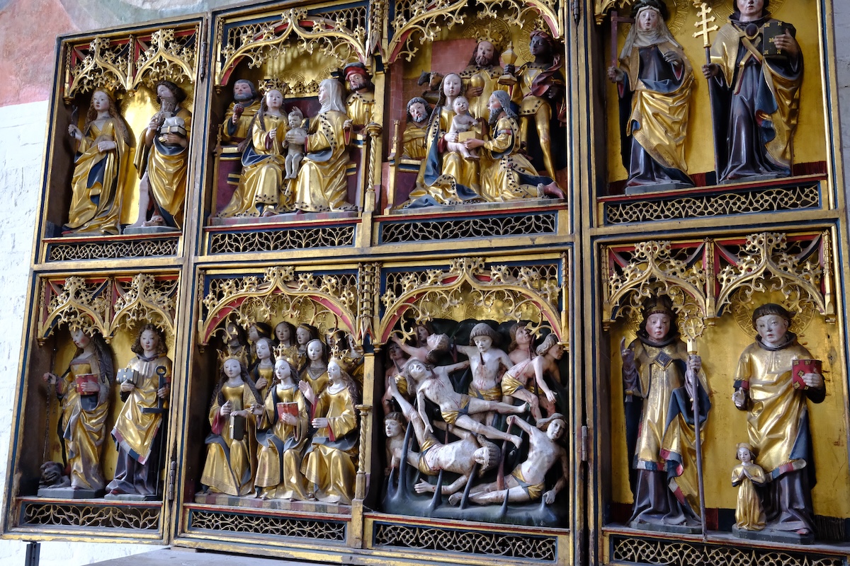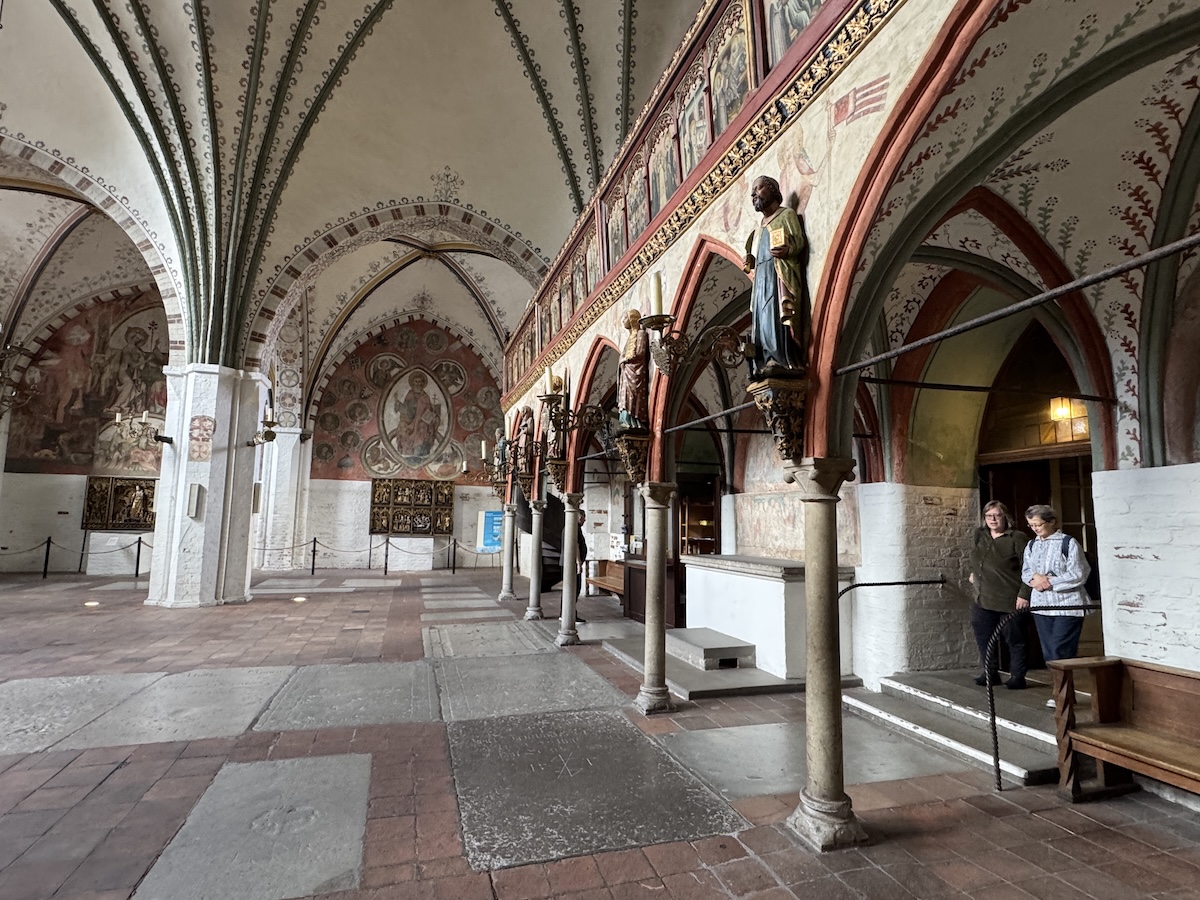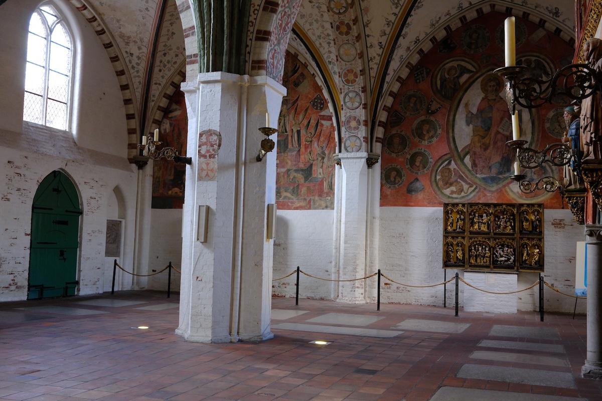 Die gewaltige Hallenkirche mit ihren vier charakteristischen Türmen, die zugleich die Silhouette der Lübecker Altstadt prägt, hatte dabei eine doppelte Funktion: Sie war Ort des Gebets, aber zugleich auch Kern einer Sozialarchitektur. Im Inneren schuf man ein beeindruckendes Zusammenspiel von Weite und Intimität. Die großen Hallenschiffe dienten als Bet- und Versammlungsräume, während die angrenzenden Bereiche in Krankensäle und Wohnkammern der Bedürftigen unterteilt waren. Seit dem 17. Jahrhundert lebten die Bewohner in kleinen hölzernen Kammern, die wie winzige Häuschen wirken und bis heute an den langen Mittelschiffen zu sehen sind – ein visuelles Sinnbild für Geborgenheit inmitten monumentaler Erhabenheit. Hier ein VR 360 Grad Rundgang durch die Hallenkirche.